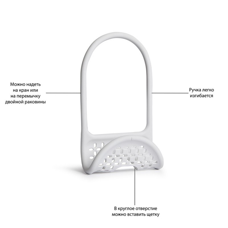 Уникальный органайзер для раковины из металлической проволоки с пластиковым покрытием поможет навести порядок на кухне. Подходит для хранения губок, щеток и прочих приспособлений для чистки и мытья. Дизайнеры: Eug?nie de Loynes, Jordan Murphy.Ручка удобно гнется и позволяет вешать органайзер на водопроводный кран или боковую сторону раковины. Перфорация дает воздуху свободно циркулировать, поэтому губки и щетки будут сохнуть быстрее.Материал: термопластичная резина, сталь. Размеры: 11х1х26 см.Пыль и загрязнения удалять при помощи мягкой влажной салфетки. Запрещается использование агрессивной бытовой химии и абразивных материалов.