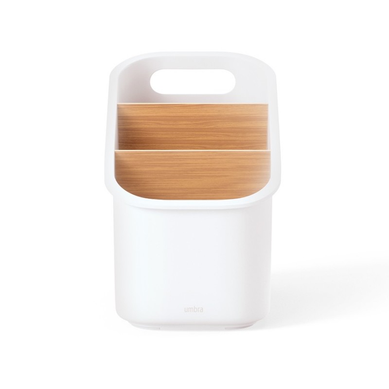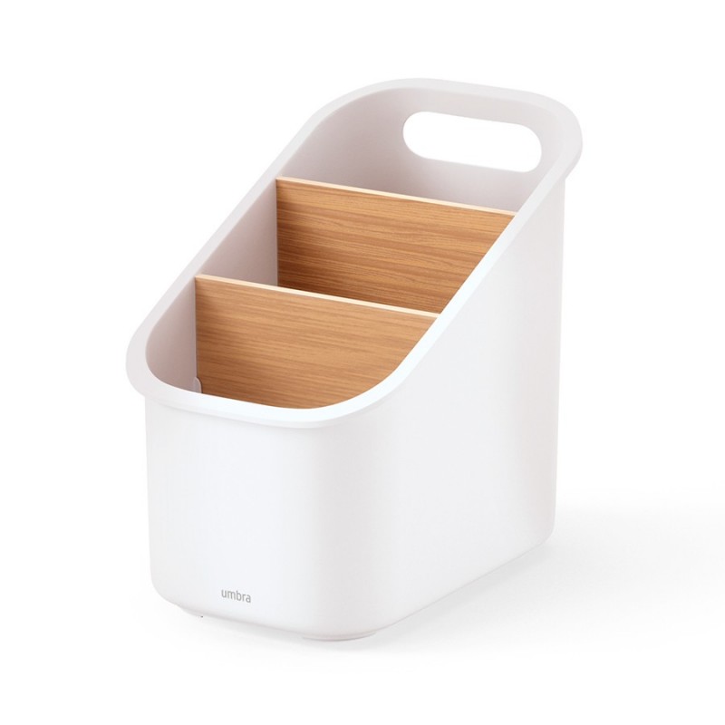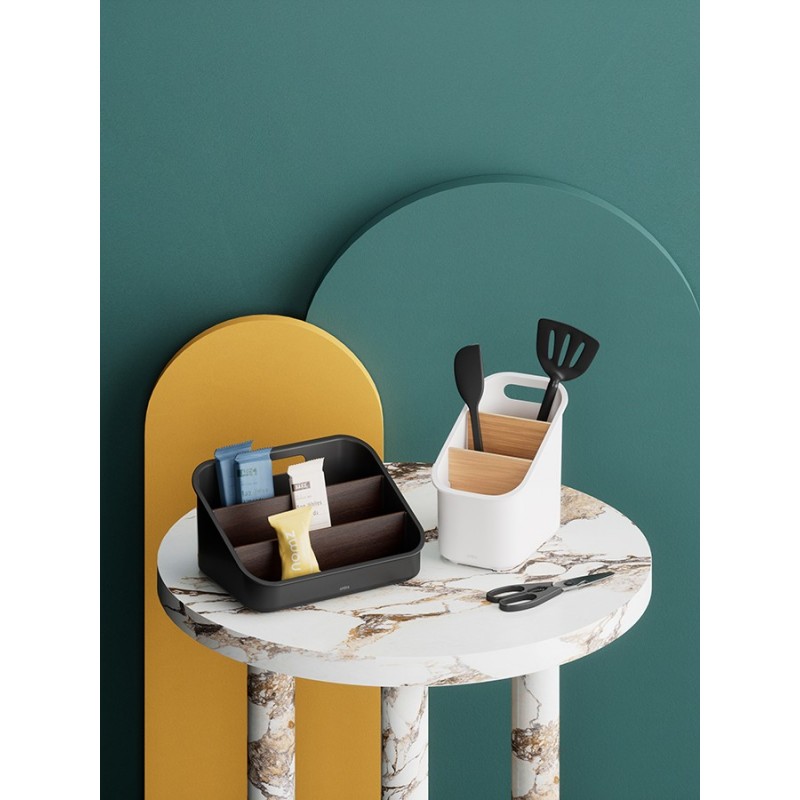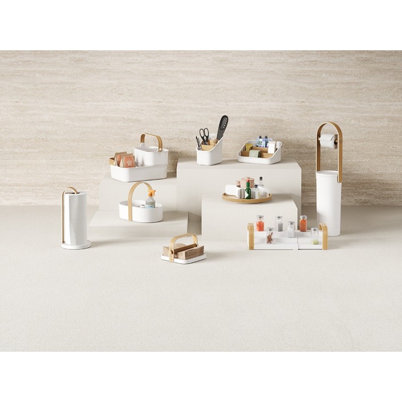 Органайзер Bellwood поможет организовать компактное хранение специй на полке или столешнице, а также обеспечить быстрый доступ к любой приправе за счет вращающейся конструкции. Органайзер имеет пять отделений, что делает его вместительным и позволяет раздельно хранить различные продукты: банки со специями, бутылки с маслом, уксусом, соусом и многое другое. Сочетание дерева и пластика подходит для различных интерьерных решений и гарантирует изделию устойчивость к износу и долгий срок службы.Материалы: тополь, переработанный АБС-пластик, бук, сталь, силикон. Размеры: 30х30х9 см. Цвет: белый/натуральное дерево.Пыль и загрязнения с поверхностей можно удалять при помощи мягкого влажного материала. Запрещается использование абразивов и агрессивной бытовой химии.