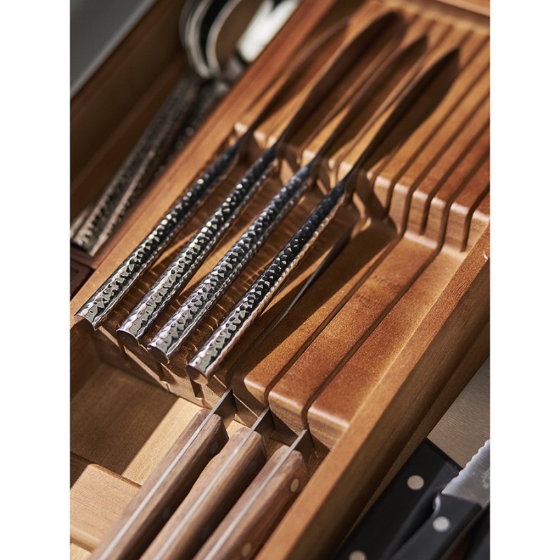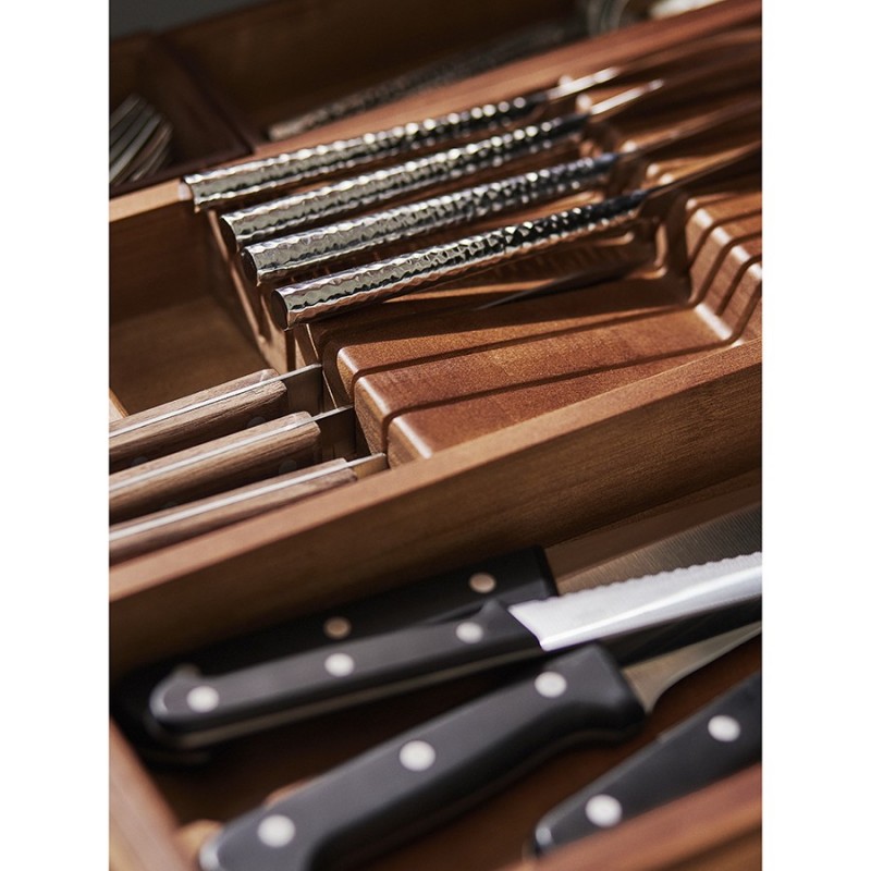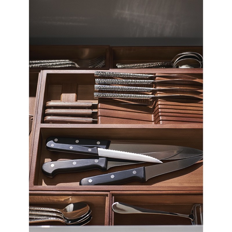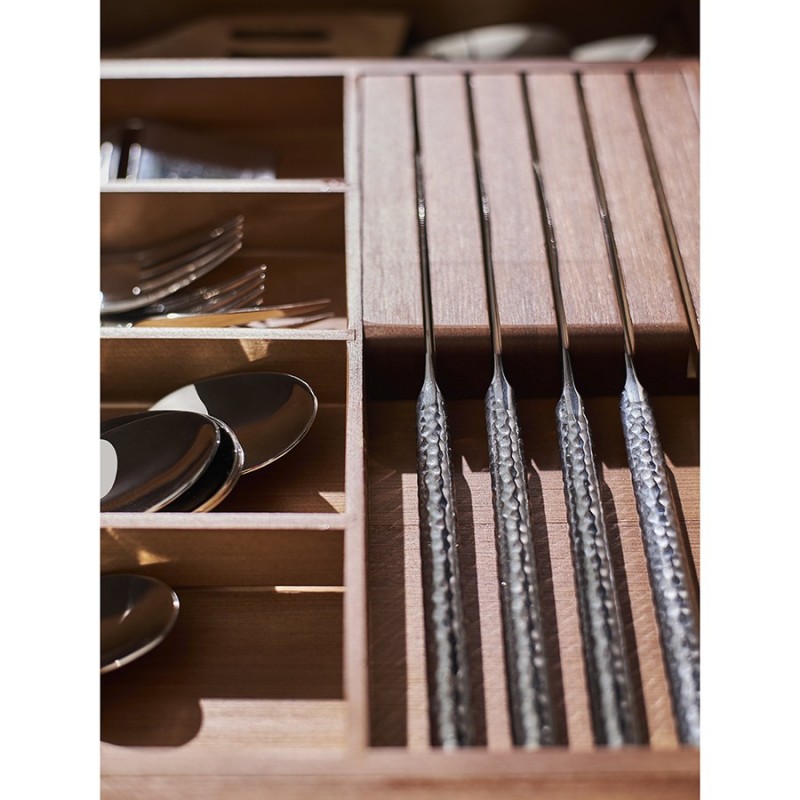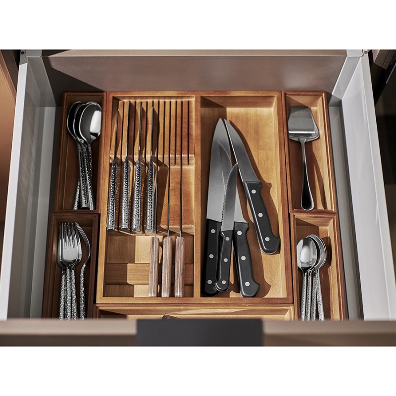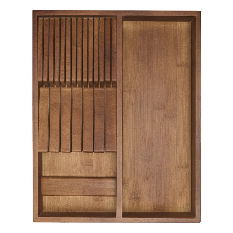 Органайзер Bambox от дизайнерского бренда Liberty Jones поможет организовать удобное хранение столовых приборов и за счет натурального дизайна органично впишется в интерьер любой современной кухни.Особенности и преимущества:- Изготовлен из бамбука – экологичного материала, который гарантирует долговечность и безопасность использования. - Имеет несколько отделений и специальный держатель для ножей, что позволяет раздельно хранить все виды столовых приборов. - За счет лаконичного дизайна и естественной цветовой гаммы вписывается в различные интерьерные решения.На поверхность органайзера нанесены клеевые точки, чтобы закрепить этикетку и зафиксировать держатель для ножей. Вы можете легко их удалить самостоятельно.Материал: бамбук. Размеры: 38х30х5 см.Загрязнения можно удалять мягким влажным материалом. После очищения органайзер необходимо хорошо просушить и только потом использовать. Запрещается применение абразивов и агрессивной бытовой химии.