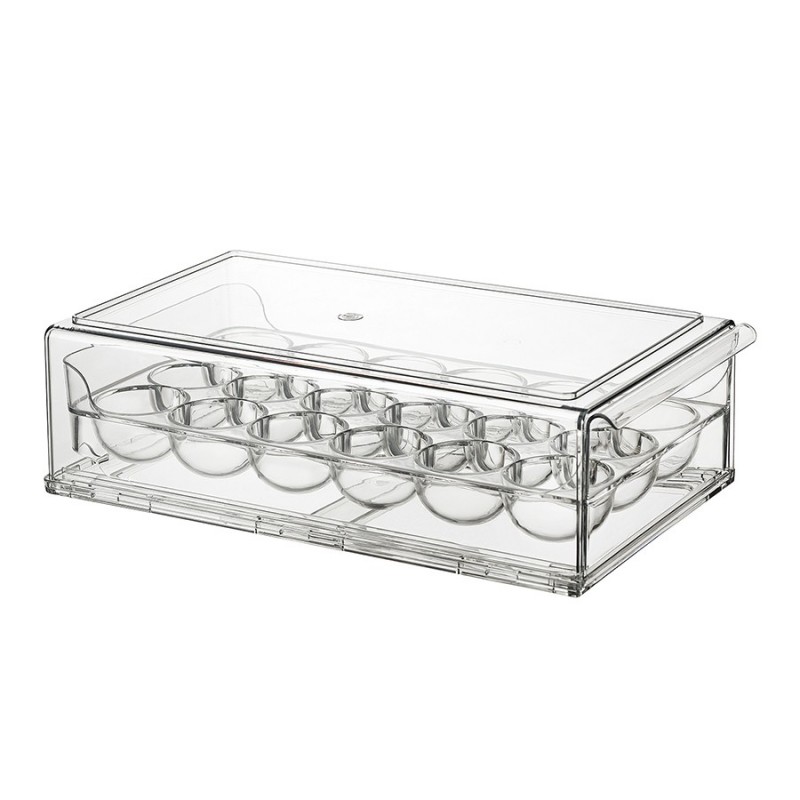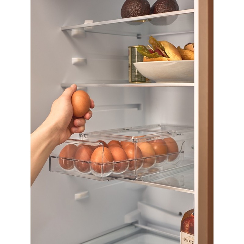 Органайзер Keep In от бренда Smart Solutions обеспечит удобное хранение яиц в холодильнике.Особенности и преимущества:- Изделие выполнено из термопластика, который обладает высокой прочностью, термостойкостью, не впитывает запахи, легко очищается и долго служит. - Контейнер имеет специальную конструкцию с выдвижным лотком, оснащенным ячейками для удобного и безопасного хранения яиц. - Прозрачные стенки позволяют видеть содержимое, исключая необходимость каждый раз выдвигать лоток.Материал: термопластик. Размеры: 32,3х18х9,7 см. Количество ячеек: 18 шт.Можно мыть вручную в теплой мыльной воде с помощью мягкой губки. Запрещается использование агрессивной бытовой химии и абразивных материалов.