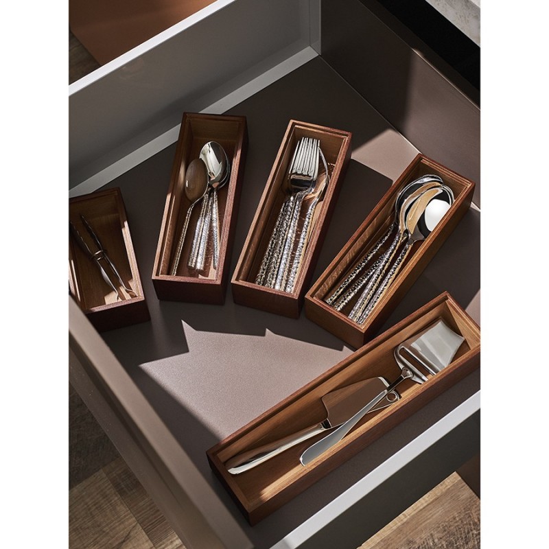 Органайзер-конструктор Bambox от дизайнерского бренда Liberty Jones поможет организовать удобное хранение столовых приборов и за счет натурального дизайна органично впишется в интерьер любой современной кухни.Особенности и преимущества:- Изготовлен из бамбука – экологичного материала, который гарантирует долговечность и безопасность использования. - Состоит из шести секций, что позволяет раздельно хранить все виды столовых приборов: ложки, вилки, ножи и прочие. - Благодаря сборной конструкции легко адаптируется под любое пространство, будь то шкаф, ящик или столешница. - За счет лаконичного дизайна и естественной цветовой гаммы вписывается в различные интерьерные решения.Материал: бамбук. Размеры: 22,9х45,7х5 см. Размеры ячеек: 6х13,5 см; 6х21 см; 6х29 см. Количество ячеек: 6 шт.Загрязнения можно удалять мягким влажным материалом. После очищения органайзер необходимо хорошо просушить и только потом использовать. Запрещается применение абразивов и агрессивной бытовой химии.