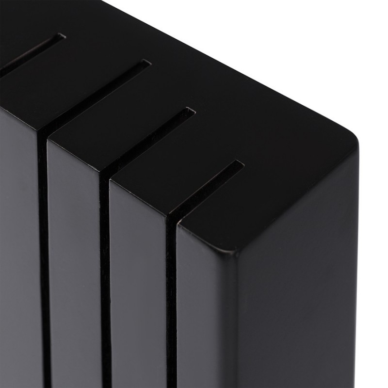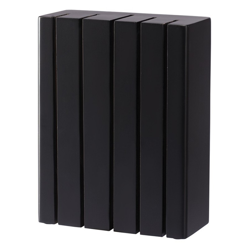 Подставка из каучукового дерева Hevea – функциональный и стильный аксессуар для вашей кухни, который обеспечит удобное хранение ножей и улучшит эргономику рабочего пространства.Особенности и преимущества:- Экологичный и долговечный материал. Каучуковая древесина плотная и твердая, устойчива к гниению, растрескиванию и деформации, что обеспечивает изделиям из нее долгий срок службы. - Специальная конструкция с магнитами. Позволяет хранить ножи отдельно друг от друга, надежно фиксируя их при помощи магнитов. Кромки инструментов ни с чем не соприкасаются, благодаря чему дольше сохраняют остроту. - Универсальность и компактность. Подставка подходит для любых кухонных ножей и не занимает много места. - Глубина и ширина прорезей подставки варьируется. Глубина крайних прорезей справа и слева – 32 мм, средних прорезей справа и слева – 42 мм, центральной прорези – 54 мм. Ширина крайних прорезей справа и слева - по 4 мм, средних прорезей справа и слева - по 5 мм, центральной прорези - 6 мм.Материал: каучуковое дерево, магнит. Размеры: 16,6х7,3х21,8 см. Цвет: черный.Пыль и загрязнения можно удалять при помощи мягкого влажного материала. Запрещается мыть в посудомоечной машине.