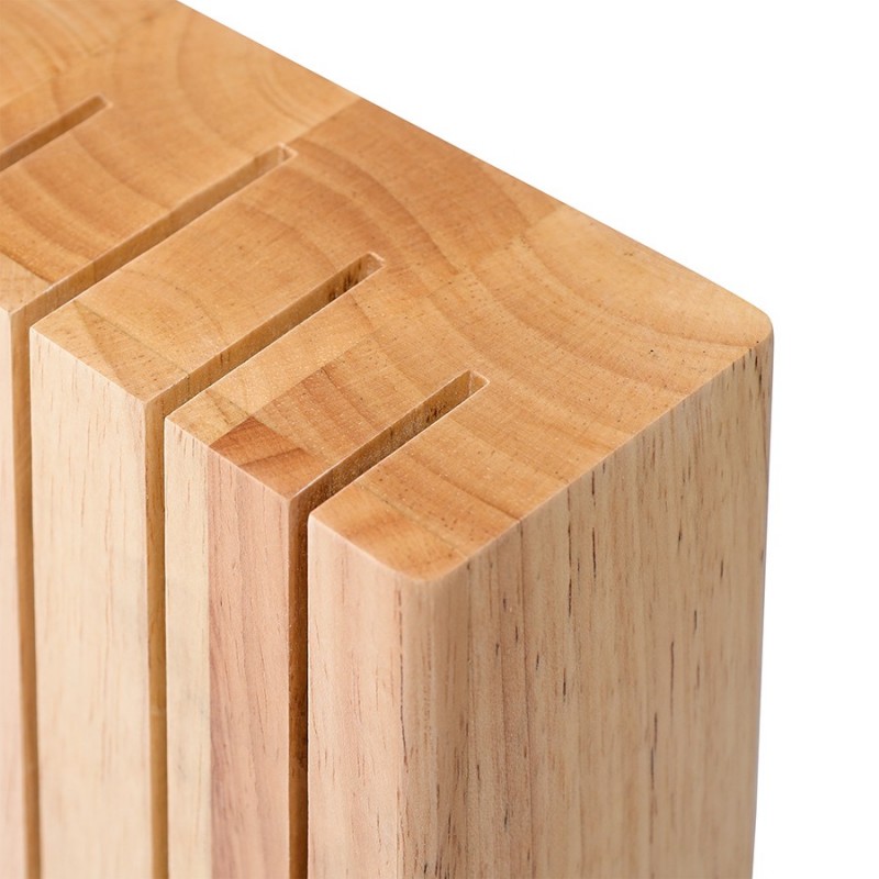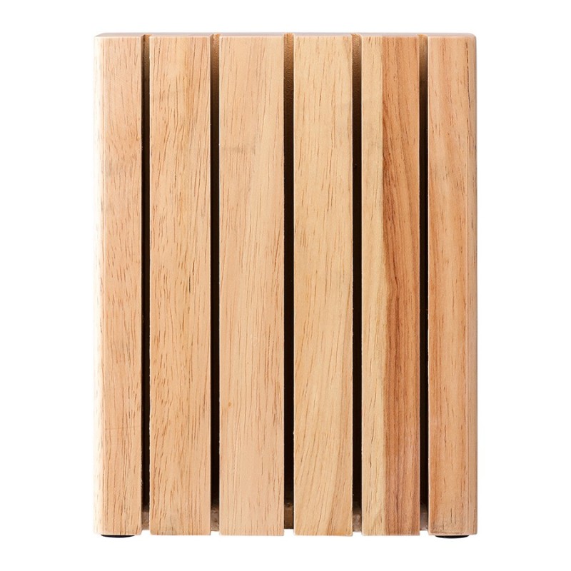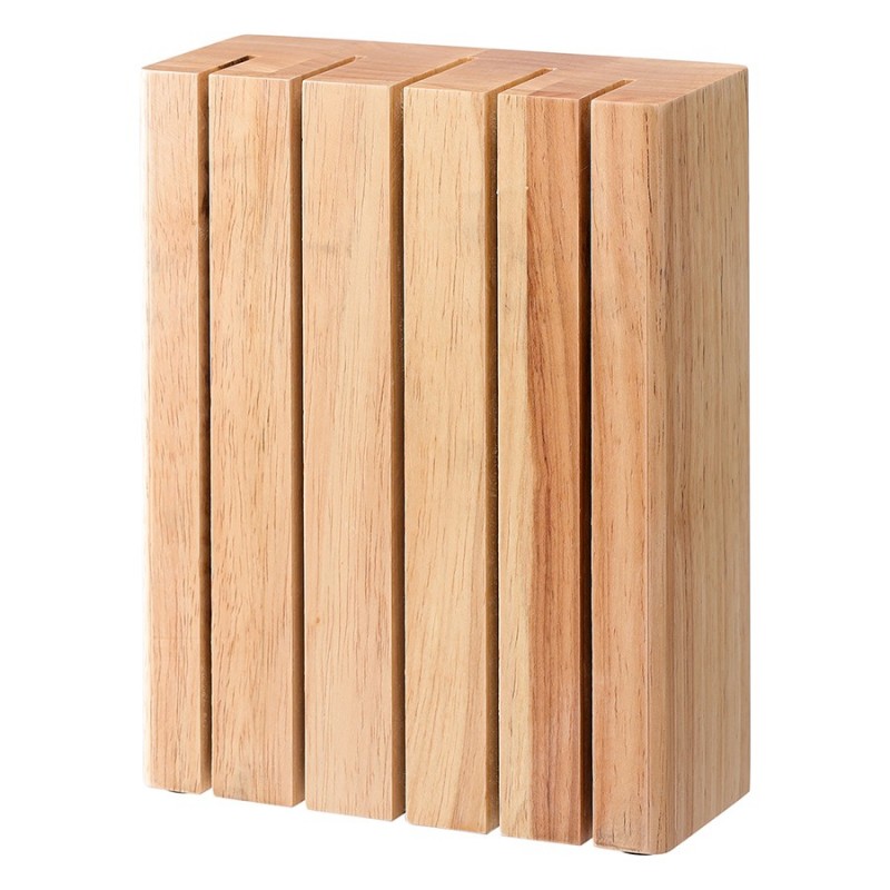 Подставка из каучукового дерева Hevea – функциональный и стильный аксессуар для вашей кухни, который обеспечит удобное хранение ножей и улучшит эргономику рабочего пространства.Особенности и преимущества:- Экологичный и долговечный материал. Каучуковая древесина плотная и твердая, устойчива к гниению, растрескиванию и деформации, что обеспечивает изделиям из нее долгий срок службы. - Специальная конструкция с магнитами. Позволяет хранить ножи отдельно друг от друга, надежно фиксируя их при помощи магнитов. Кромки инструментов ни с чем не соприкасаются, благодаря чему дольше сохраняют остроту. - Универсальность и компактность. Подставка подходит для любых кухонных ножей и не занимает много места. - Глубина и ширина прорезей подставки варьируется. Глубина крайних прорезей справа и слева – 32 мм, средних прорезей справа и слева – 42 мм, центральной прорези – 54 мм. Ширина крайних прорезей справа и слева - по 4 мм, средних прорезей справа и слева - по 5 мм, центральной прорези - 6 мм.Материал: каучуковое дерево, магнит. Размеры: 16,6х7,3х21,8 см. Цвет: светлое дерево.Пыль и загрязнения можно удалять при помощи мягкого влажного материала. Запрещается мыть в посудомоечной машине.