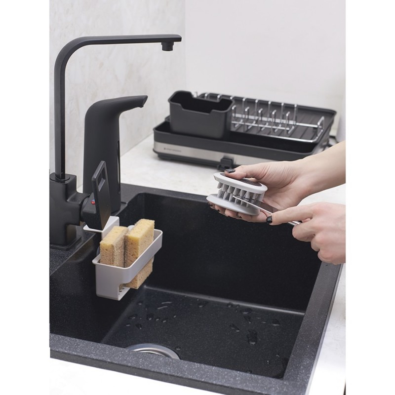 Щетка Cleanife поможет быстро, а главное безопасно очистить кухонные ножи, что делает ее прекрасным приобретением для всех, кто ценит удобство и эффективность.Особенности и преимущества:- Ее уникальная конструкция позволяет удалять загрязнения одновременно с обеих сторон ножа, что делает процесс очищения более быстрым и эффективным. - Специально расположенные щетинки средней жесткости из устойчивого к износу нейлона плотно прилегают и качественно удаляют загрязнения, при этом не повреждают лезвие. - Благодаря текстурированной поверхности щетка надежно сидит в руке и не выскальзывает во время использования. - Предусмотрена возможность регулирования плотности смыкания щетки путем надавливания на нее рукой. - За счет компактности аксессуар занимает минимум места на раковине, в ящике стола или органайзере.Материалы: ABS-пластик, полипропилен, эластомер, нейлон. Размеры: 8,6х7,5х5 см.Можно мыть в посудомоечной машине.