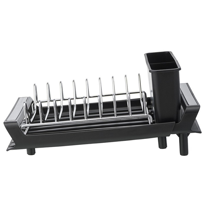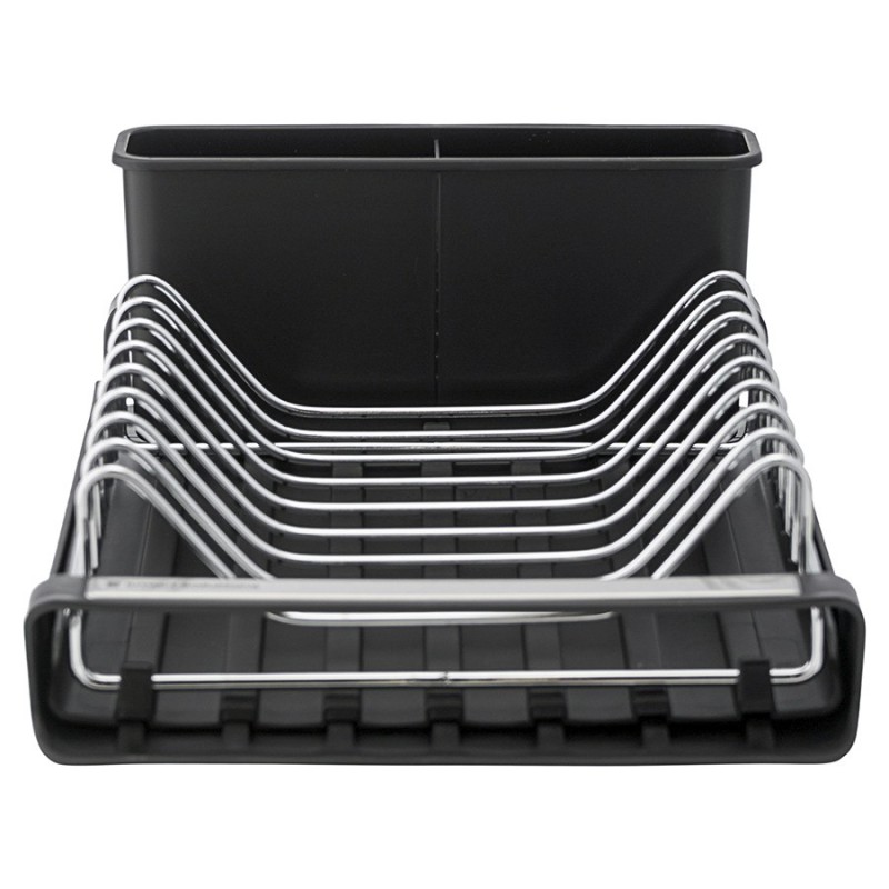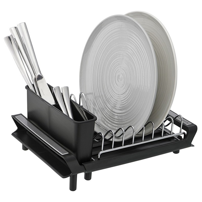 Сушилка Atle – компактная, но в то же время вместительная модель с раздвижной конструкцией, в которой предусмотрены отделения для посуды и кухонных принадлежностей. Удобное размещение и надежную фиксацию тарелок и других емкостей обеспечивают железные разделители. Поддон выполнен из практичного полипропилена, который легко моется. Стальные элементы на корпусе имеют специальное покрытие против отпечатков пальцев. Настольную сушилку можно размещать в любом месте и для ее установки не требуется делать отверстия в стене.Материалы: полипропилен, сталь, железо. Размеры в сложенном виде: 20х28х12,5 см. Размеры в разложенном виде: 20х47х12,5 см. Цвет: черный.Сушилку можно очищать от загрязнений в теплой мыльной воде с помощью мягкой губки. Запрещается использование агрессивной бытовой химии и абразивных материалов.