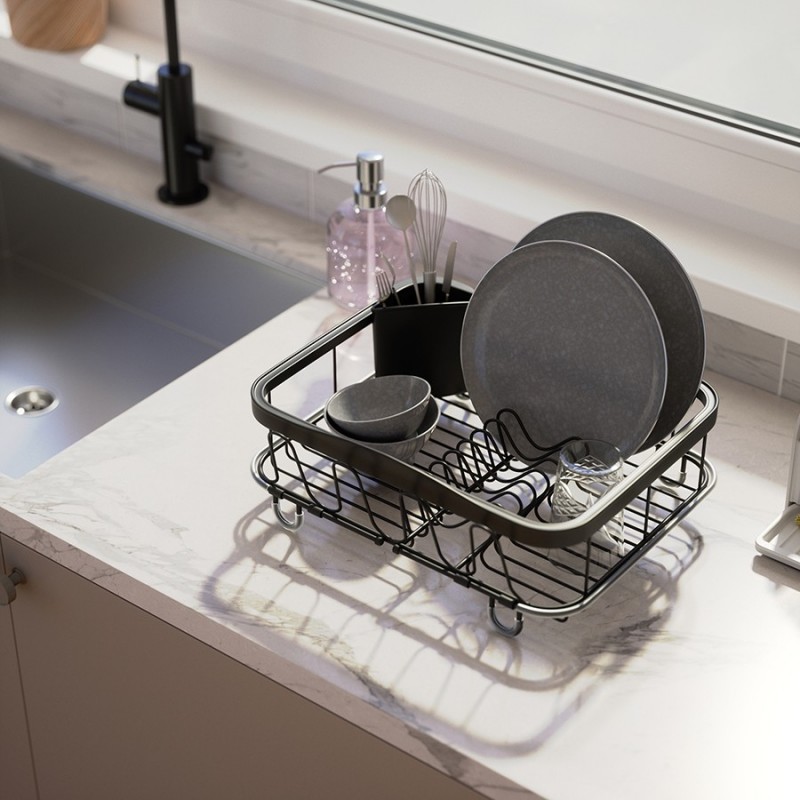 Сушилка для посуды sinkin, 28х14х47 см, черная (артикул 2922)
