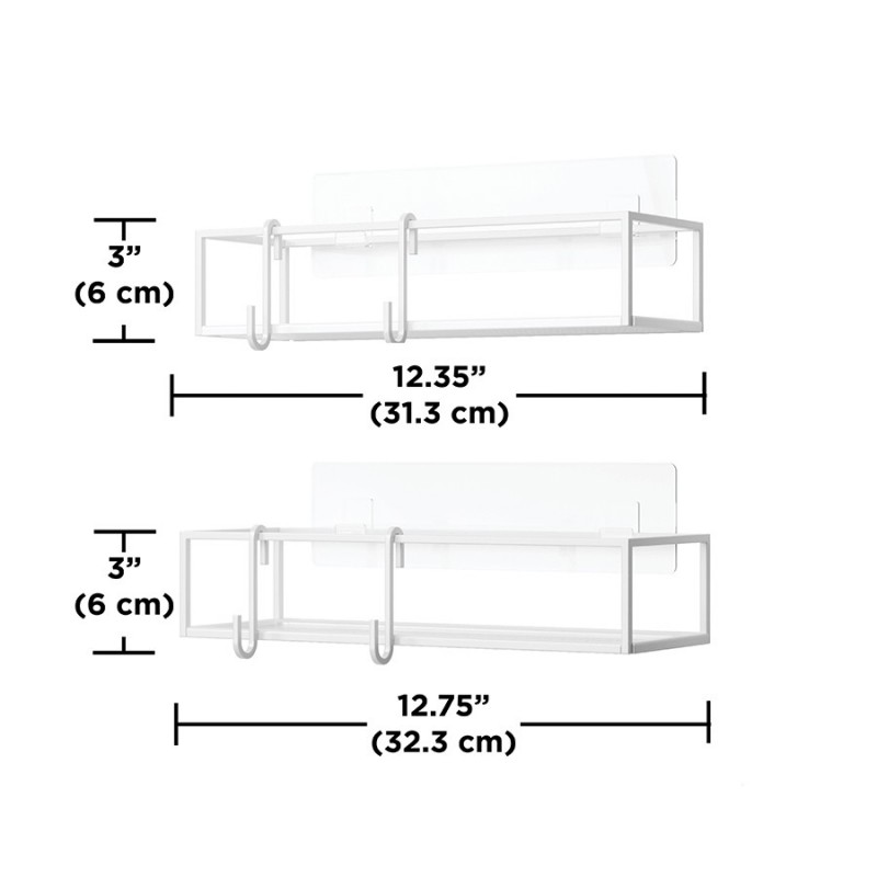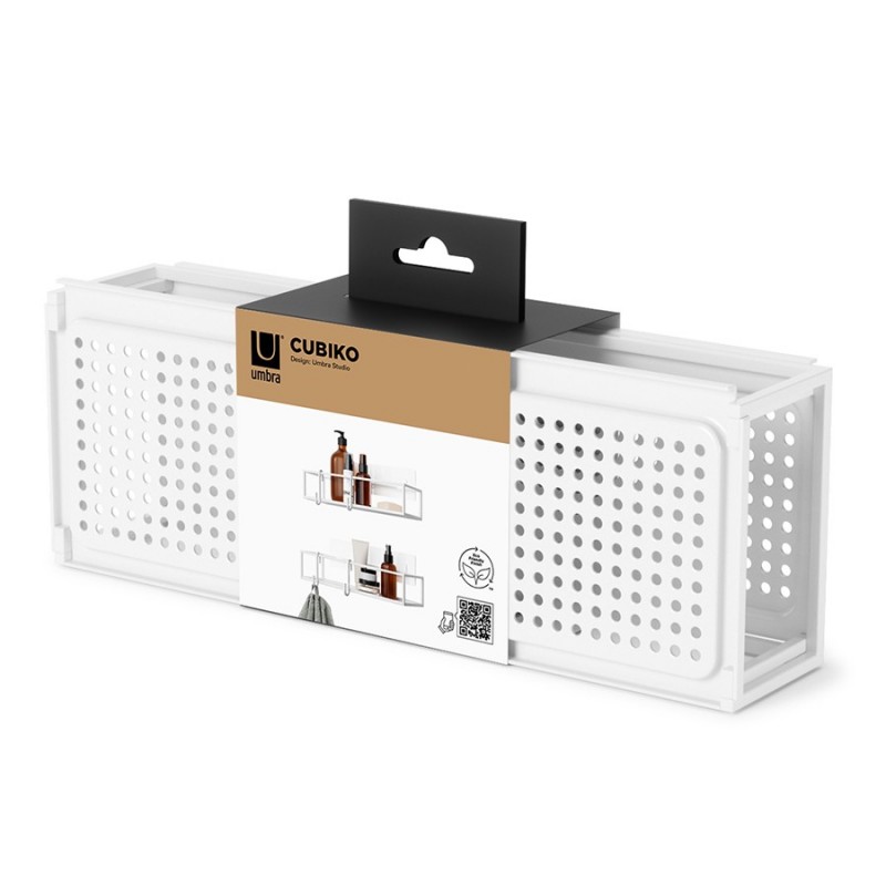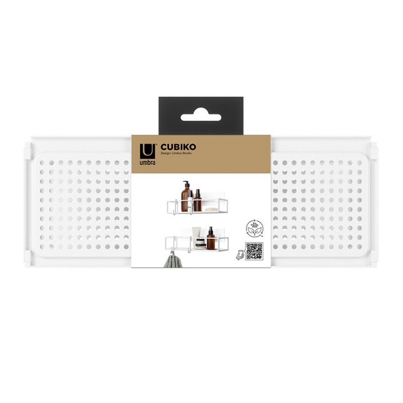 Полки Cubiko сделают интерьер душевой или ванной комнаты более комфортным и функциональным. Изделия из высокопрочной, устойчивой к коррозии стали имеют продолжительный срок службы и сохраняют привлекательный вид долгие годы. Компактность и современный дизайн позволяют легко интегрировать эти настенные конструкции в любое пространство. Предусмотрены специальные крючки, которые можно использовать для размещения полотенец, мочалки и других аксессуаров. Полки крепятся на влагостойкие клейкие ленты, которые можно использовать на любых поверхностях, кроме пористых: плитка, гипсокартон, бетон и другие.Материал: сталь. Размеры: 32x12x6 см. Вес: 860 г. Максимальная нагрузка: 4,5 кг. Цвет: белый.Пыль и загрязнения с поверхностей можно удалять при помощи мягкого влажного материала.
