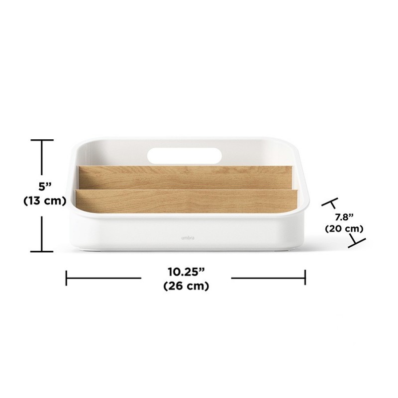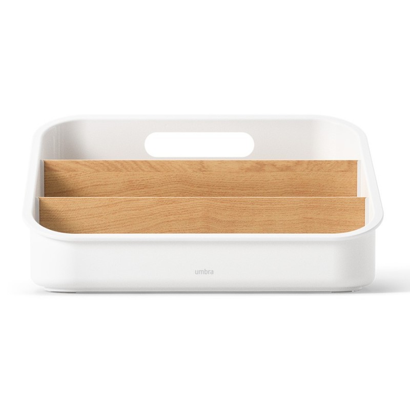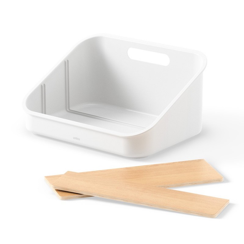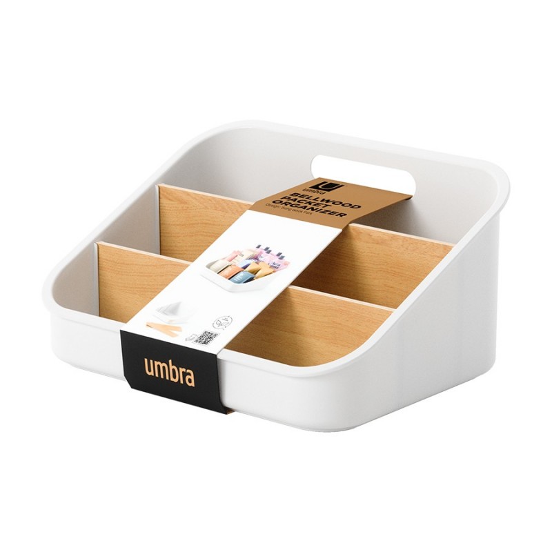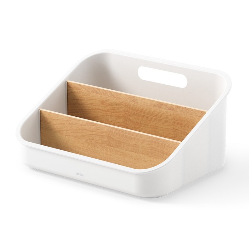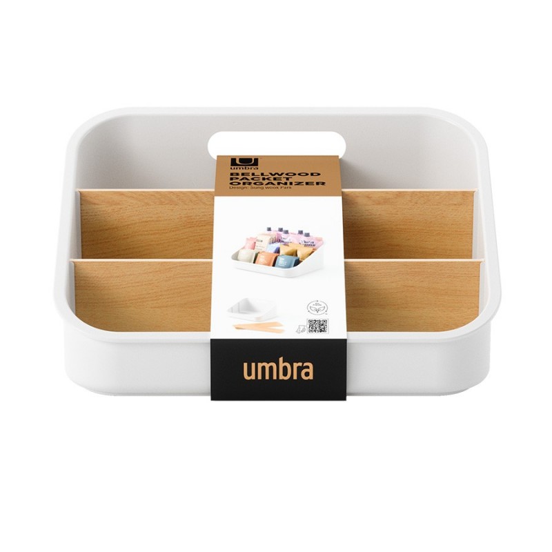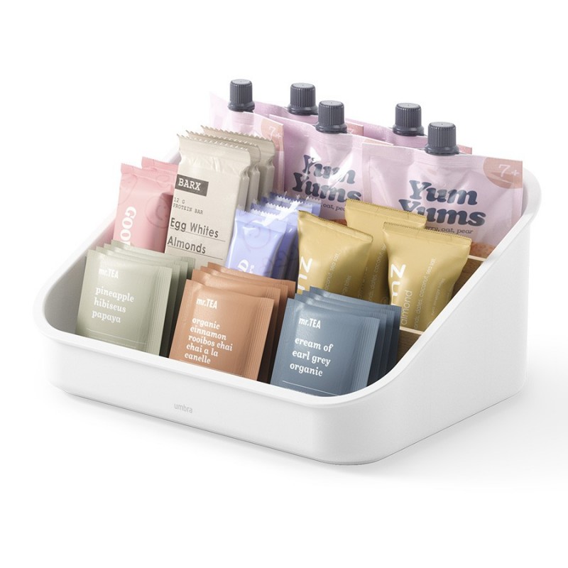 Органайзер Bellwood поможет навести порядок на кухне и органично впишется в различные интерьерные решения. Благодаря трехуровневой конструкции и съемным перегородкам вы сможете удобно хранить все свои лакомства в одном месте – от пакетиков чая, сахара и растворимого кофе, до шоколада, снеков и много другого. Небольшие размеры позволяют размещать органайзер в любом удобном месте, в том числе на столешнице и рядом с чайником. Основание изделия выполнено из переработанного АБС-пластика, известного своей прочностью и устойчивостью к износу. Перегородки изготовлены из древесины тополя и бука. Разборная конструкция обеспечивает удобное использование и простой уход.Материалы: переработанный АБС-пластик, тополь, бук, силикон. Размеры: 26х20х13 см. Цвет: белый/натуральное дерево.Пыль и загрязнения с поверхностей можно удалять при помощи мягкого влажного материала. Запрещается использование абразивов и агрессивной бытовой химии.