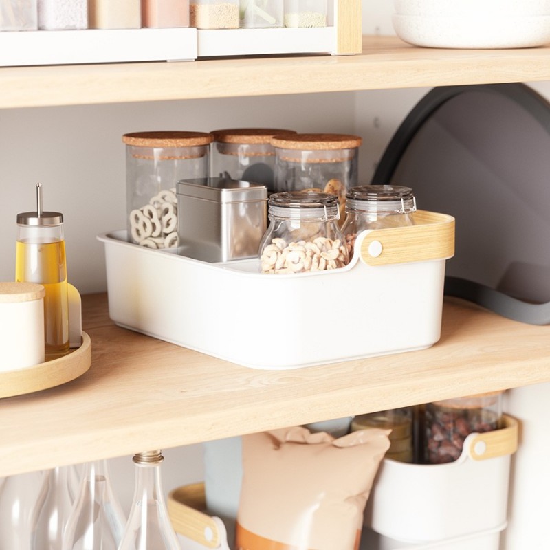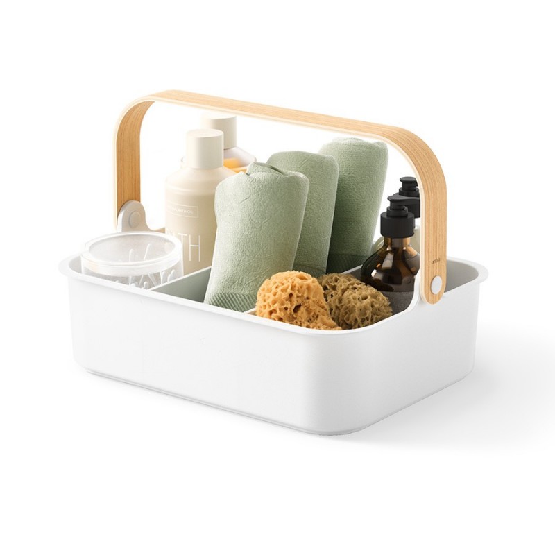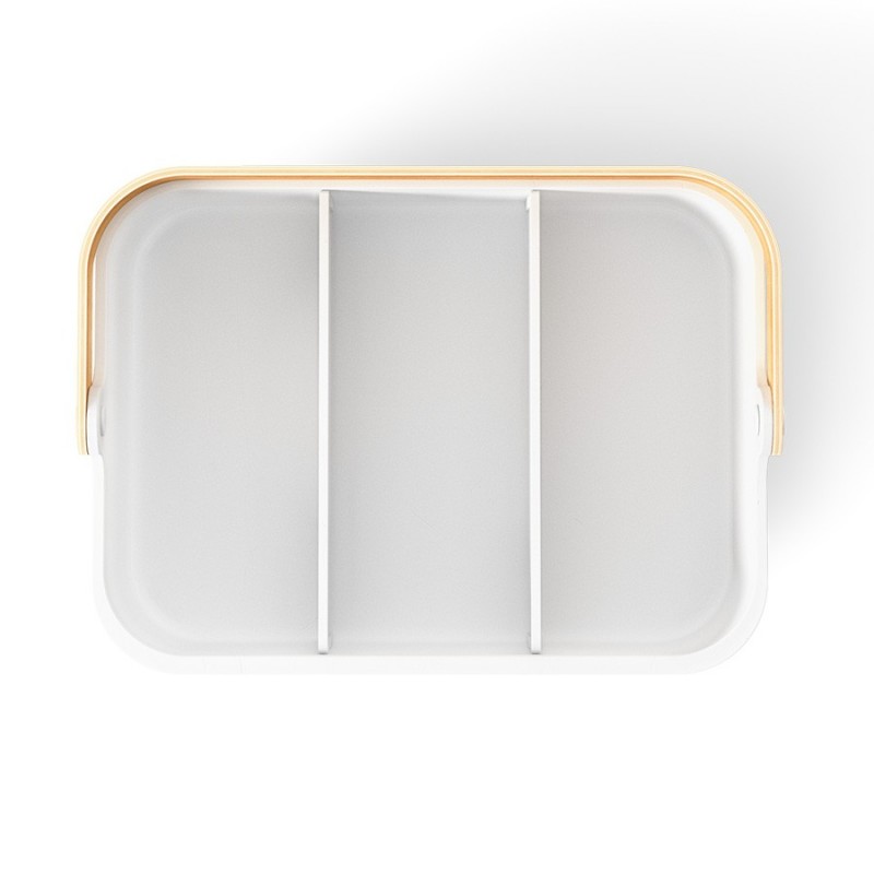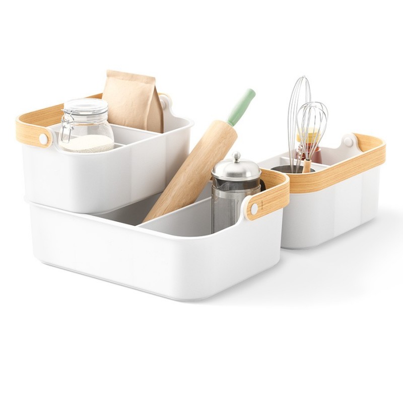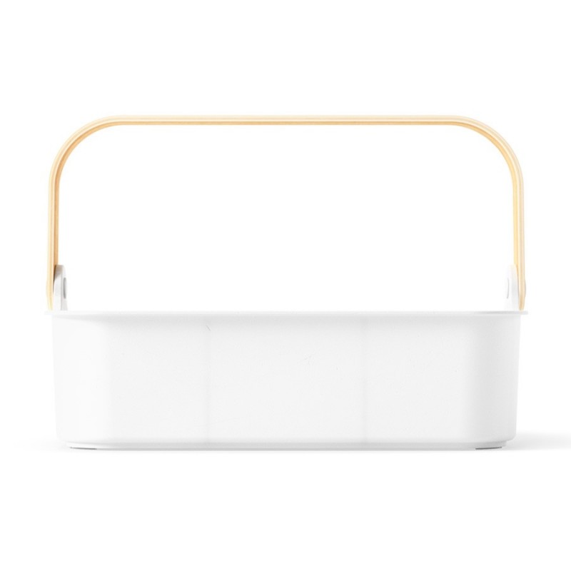 Органайзер Bellwood поможет организовать компактное хранение продуктов и вещей в любой из комнат. Специальные разделители позволяют удобно размещать и сортировать предметы. Органайзер на 80% выполнен из переработанного АБС-пластика, известного своей прочностью, устойчивостью к износу и долговечностью. Он оснащен ручкой из древесины, которая обеспечивает простую переноску, а также делает дизайн привлекательным и интересным.Материалы: переработанный АБС-пластик, тополь, ясень, нейлон, силикон. Размеры: 37х27х25 см. Цвет: белый/натуральное дерево.Пыль и загрязнения с поверхностей можно удалять при помощи мягкого влажного материала. Запрещается использование абразивов и агрессивной бытовой химии.