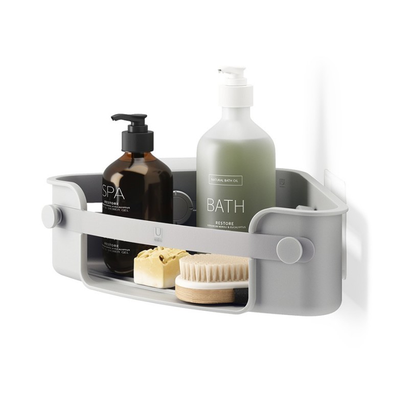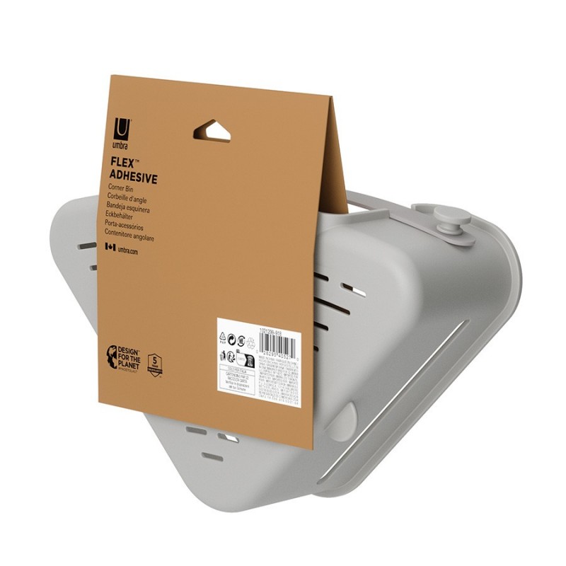 Настенный органайзер Flex Adhesive поможет удобно разместить в душевой зоне все необходимые средства для ежедневного ухода, включая гель для душа, шампунь, кондиционер, мочалки и бритвы.Особенности и преимущества:- Изделие на 85% выполнено из переработанного АБС-пластика, который обладает высокой прочностью, устойчивостью к повреждениям и износу. - Органайзер надежно крепится на присоски – при необходимости его можно легко снять и установить в другом месте. - Специальные отверстия обеспечивают сток воды и позволяют сохранять используемую под размещение предметов поверхность сухой и чистой. - В конструкции предусмотрено место для хранения флаконов с уходовыми средствами, а также крючки для мочалки и полотенца. - Угловая модель позволяет экономить полезное пространство.Материалы: переработанный АБС-пластик, термопластичная резина, термопластик, поликарбонат. Размеры: 30х19х9 см. Цвет: серый.Органайзер можно мыть в теплой мыльной воде с помощью мягкой губки. Запрещается использование абразивных материалов и агрессивной бытовой химии.