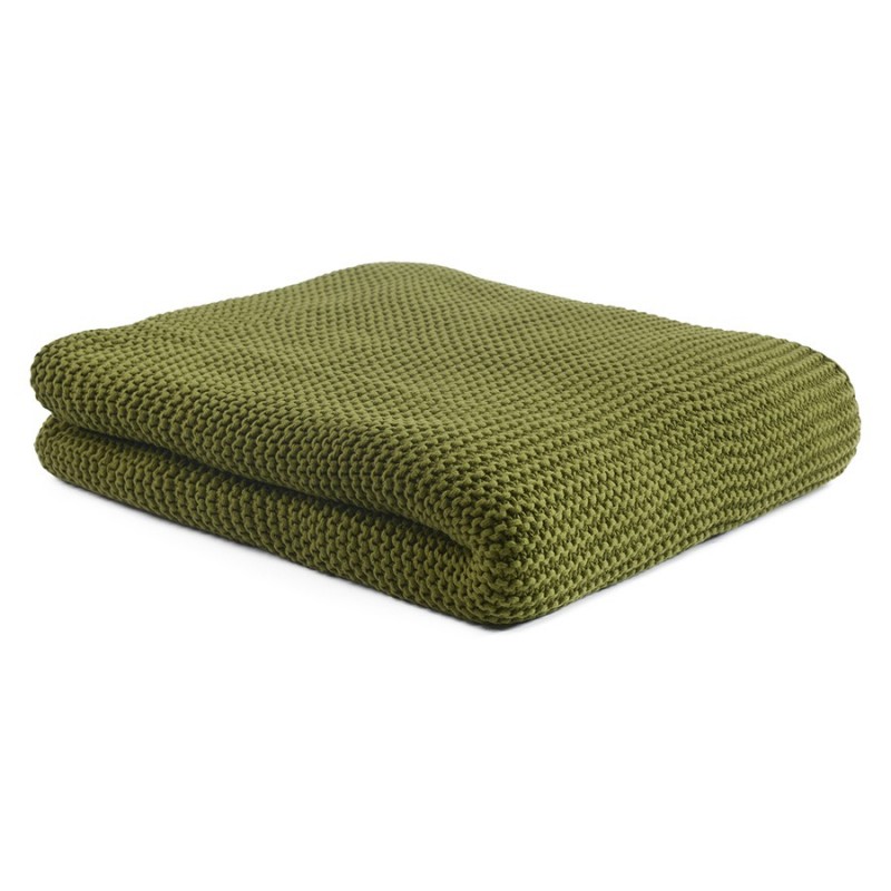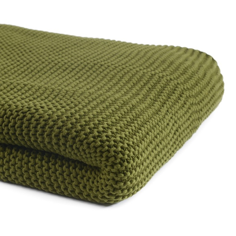 Плед из хлопка жемчужной вязки оливкового цвета из коллекции essential, 130х180 см (артикул 1742)