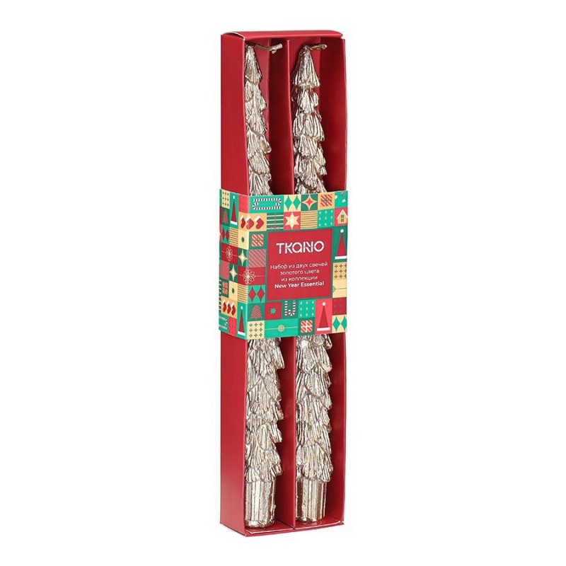 Набор из двух свечей из коллекции New Year Essential создаст волшебную атмосферу праздника. Высокие золотистые елочки идеально подходят для украшения праздничного стола, камина или подоконника.Особенности и преимущества:- Свечи имеют устойчивое основание, но под них лучше использовать специальные подсвечники, чтобы плавящийся воск не попадал на столешницу или другую поверхность. - Изделия из качественного парафина при горении не выделяют токсичных веществ, поэтому безопасны для здоровья человека и домашних животных.Материалы: парафин. Размеры: 2,2х2,2х25 см. Цвет: золотистый.! Не оставлять без присмотра горящую свечу ! Использовать вдали от легковоспламеняющихся материалов ! Беречь от детей и домашних животных ! Зажигать свечу, предварительно расположив ее на подсвечнике