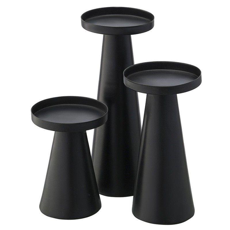 Подсвечники Fyr – изящная классика в современной интерпретации.Аксессуары идеально подходят не только для создания романтического освещения, но и в качестве украшения интерьера. Конусовидные конструкции напоминают крохотные маяки, свет которых делает пространство уютным и немного волшебным. Изделия выполнены из окрашенного железа. Материал отличается устойчивостью к повреждениям и износу. Такой набор станет прекрасным приобретением и необычным подарком к празднику.! Обращаем ваше внимание, что этот предмет изготовлен вручную и может быть не идеален. Небольшие неровности, потертости и различия в цвете – это не брак, а индивидуальная особенность товара, произведенного ручным способом.Материал: железо. Размеры: 8,9х8,9х12,7 см; 8,9х8,9х17,8 см; 8,9х8,9х22,9 см. Цвет: черный. Количество предметов в наборе: 3 шт.Для удаления пыли и загрязнений можно использовать мягкий влажный материал.