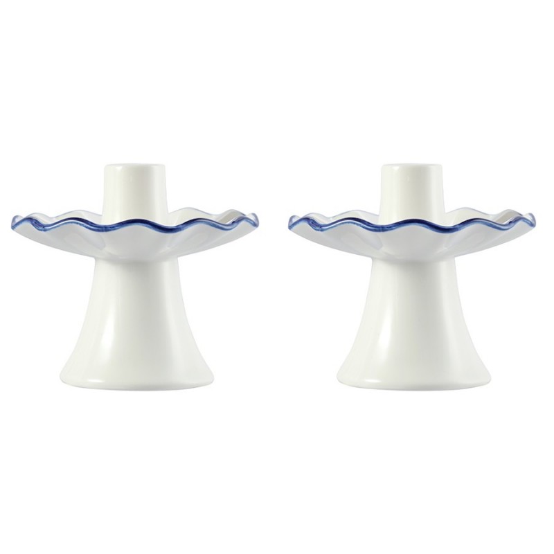 Набор из двух подсвечников – еще один элегантный штрих в коллекции фарфоровой посуды Santorini от бренда Liberty Jones. Это изделия, которые привносят в интерьер умиротворяющую атмосферу средиземноморского уюта. Комбинация подсвечников разной высоты позволит создать динамичную и выразительную композицию на каминной полке, обеденном столе или кофейном столике.Особенности и преимущества:- Изделия выполнены из качественного фарфора, устойчивого к механическим повреждениям, царапинам и сколам. - Акцентная голубая кайма придает белоснежным подсвечникам особую элегантность. - Широкая окантовка с рельефной поверхностью создает красивую игру света и тени при горении свечи и надежно защищает поверхность стола от попадания воска. - Лаконичные формы и мягкие линии подсвечников подчеркивают эстетику современного интерьера. Они гармонично сочетаются с другими изделиями из коллекции Santorini, а также с предметами сервировки стола в любой цветовой гамме. - Универсальный дизайн позволяет использовать подсвечники в качестве самостоятельных декоративных элементов для создания в интерьере особой атмосферы.Коллекция Santorini великолепно передает атмосферу уединенного греческого острова, известного своими завораживающими видами и удивительной архитектурой. Оттенки белого и синего напоминают о бескрайнем море и уютных домиках на скалах, а необычная волнистая фактура фарфора ассоциируется с каменистыми склонами.Материал: фарфор. Размеры: 12х12х10,5 см.Пыль и загрязнения можно удалять при помощи мягкого влажного материала. Запрещается использование абразивов и агрессивной бытовой химии.