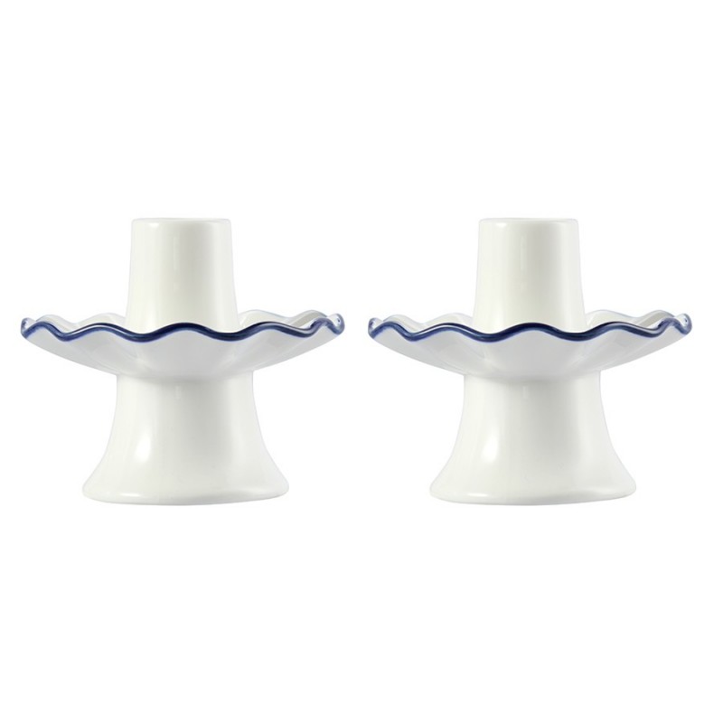 Набор из двух подсвечников – еще один элегантный штрих в коллекции фарфоровой посуды Santorini от бренда Liberty Jones. Это изделия, которые привносят в интерьер умиротворяющую атмосферу средиземноморского уюта. Комбинация подсвечников разной высоты позволит создать динамичную и выразительную композицию на каминной полке, обеденном столе или кофейном столике.Особенности и преимущества:- Изделия выполнены из качественного фарфора, устойчивого к механическим повреждениям, царапинам и сколам. - Акцентная голубая кайма придает белоснежным подсвечникам особую элегантность. - Широкая окантовка с рельефной поверхностью создает красивую игру света и тени при горении свечи и надежно защищает поверхность стола от попадания воска. - Лаконичные формы и мягкие линии подсвечников подчеркивают эстетику современного интерьера. Они гармонично сочетаются с другими изделиями из коллекции Santorini, а также с предметами сервировки стола в любой цветовой гамме. - Универсальный дизайн позволяет использовать подсвечники в качестве самостоятельных декоративных элементов для создания в интерьере особой атмосферы.Коллекция Santorini великолепно передает атмосферу уединенного греческого острова, известного своими завораживающими видами и удивительной архитектурой. Оттенки белого и синего напоминают о бескрайнем море и уютных домиках на скалах, а необычная волнистая фактура фарфора ассоциируется с каменистыми склонами.Материал: фарфор. Размеры: 9,5х9,5х8 см.Пыль и загрязнения можно удалять при помощи мягкого влажного материала. Запрещается использование абразивов и агрессивной бытовой химии.