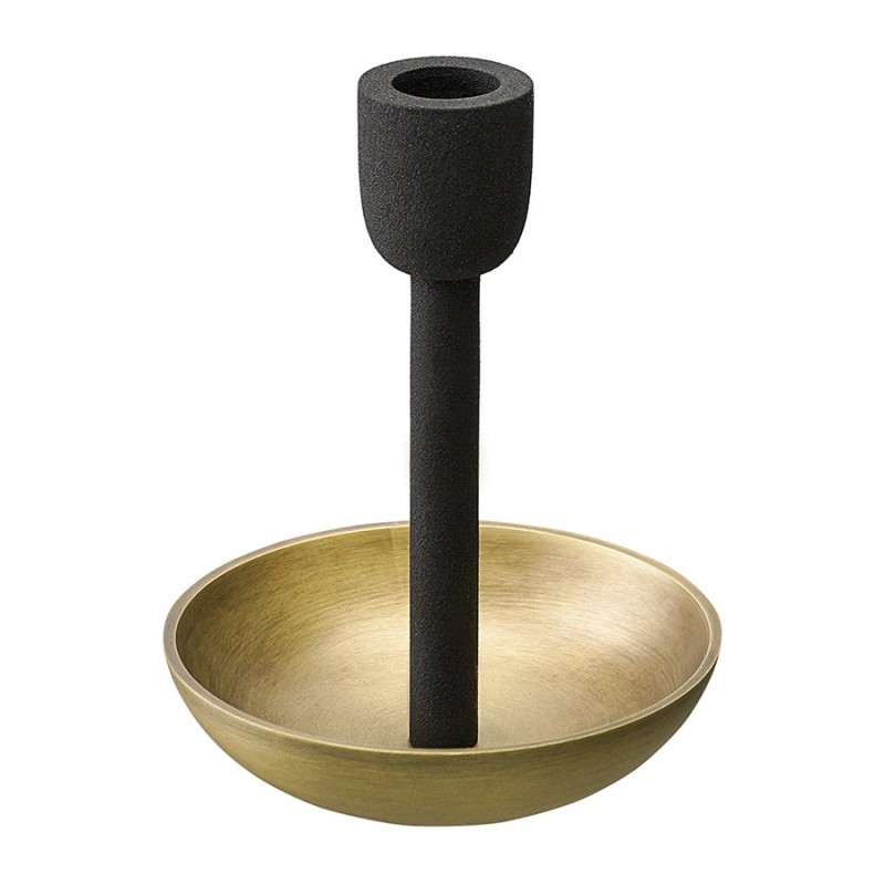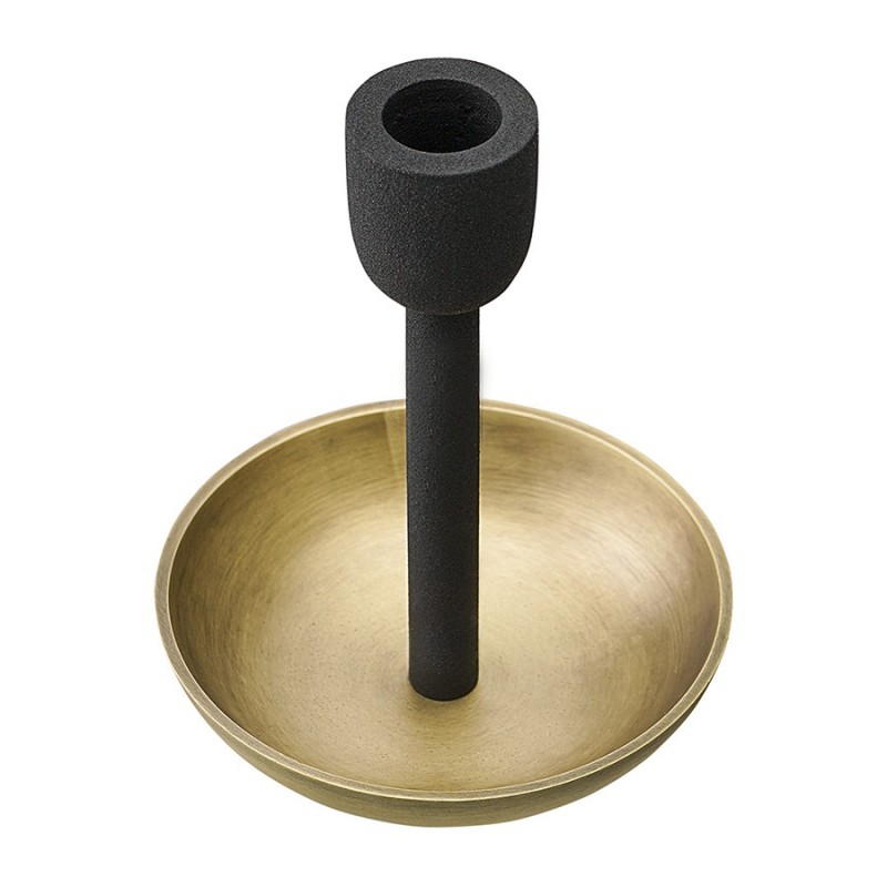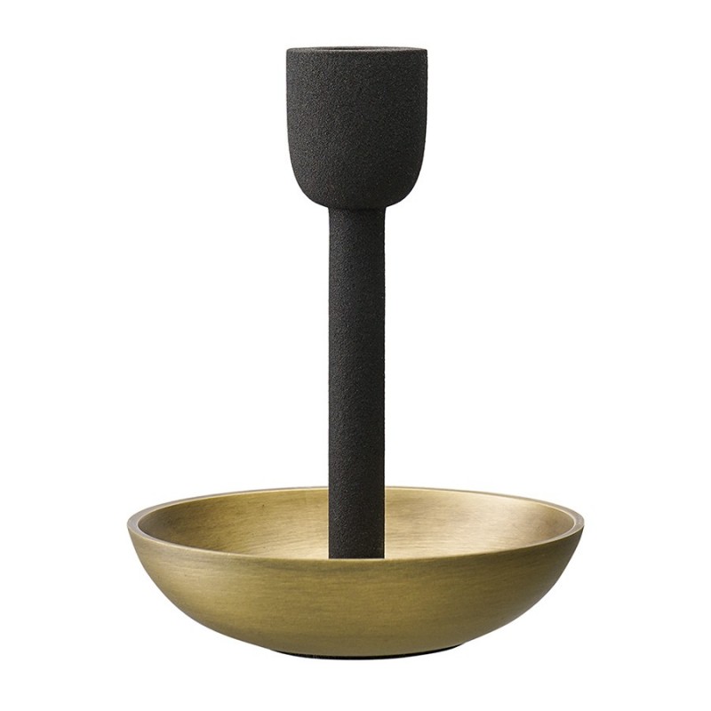 Подсвечник Fyr Bran от дизайнерского бренда Bergenson Bjorn поможет создать в интерьере теплую атмосферу и сделать акцент на стильных элементах декора. Его можно использовать в любых пространствах, на различных поверхностях.Особенности и преимущества:- Изготовленный из алюминия, этот подсвечник сочетает в себе легкость и прочность, обеспечивая долговечное и удобное использование. - Особенности конструкции позволяют размещать аксессуар на любых поверхностях, не боясь повредить их или испачкать каплями горячего воска. - Благодаря современному минималистичному дизайну такой декор органично смотрится в различных интерьерных решениях.! Обращаем ваше внимание, что этот предмет изготовлен вручную и может быть не идеален. Небольшие неровности, потертости и различия в цвете – это не брак, а индивидуальная особенность товара, произведенного ручным способом.Материал: алюминий. Высота: 15 см. Цвет: черный/античная латунь.Пыль с подсвечника можно убирать при помощи мягкого влажного материала. Для удаления загрязнений рекомендуется использовать мыльный раствор воды. После очищения аксессуар необходимо вытереть сухой тканью. Запрещается применение абразивов и агрессивной бытовой химии.