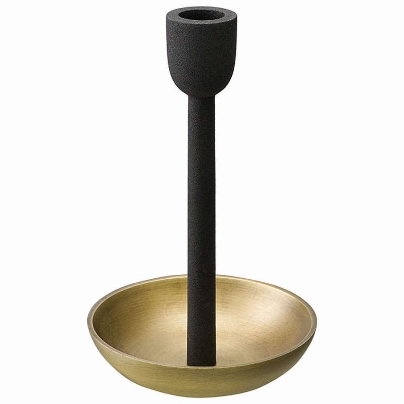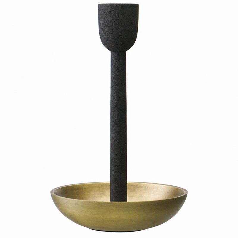 Подсвечник Fyr Bran от дизайнерского бренда Bergenson Bjorn поможет создать в интерьере теплую атмосферу и сделать акцент на стильных элементах декора. Его можно использовать в любых пространствах, на различных поверхностях.Особенности и преимущества:- Изготовленный из алюминия, этот подсвечник сочетает в себе легкость и прочность, обеспечивая долговечное и удобное использование. - Особенности конструкции позволяют размещать аксессуар на любых поверхностях, не боясь повредить их или испачкать каплями горячего воска. - Благодаря современному минималистичному дизайну такой декор органично смотрится в различных интерьерных решениях.! Обращаем ваше внимание, что этот предмет изготовлен вручную и может быть не идеален. Небольшие неровности, потертости и различия в цвете – это не брак, а индивидуальная особенность товара, произведенного ручным способом.Материал: алюминий. Высота: 19 см. Цвет: черный/античная латунь.Пыль с подсвечника можно убирать при помощи мягкого влажного материала. Для удаления загрязнений рекомендуется использовать мыльный раствор воды. После очищения аксессуар необходимо вытереть сухой тканью. Запрещается применение абразивов и агрессивной бытовой химии.