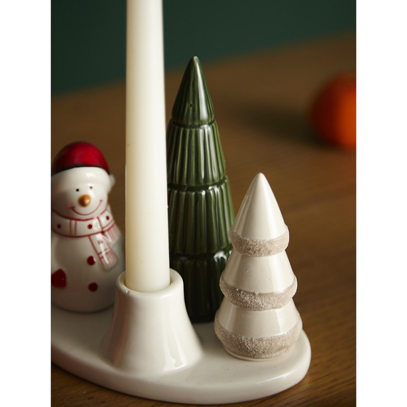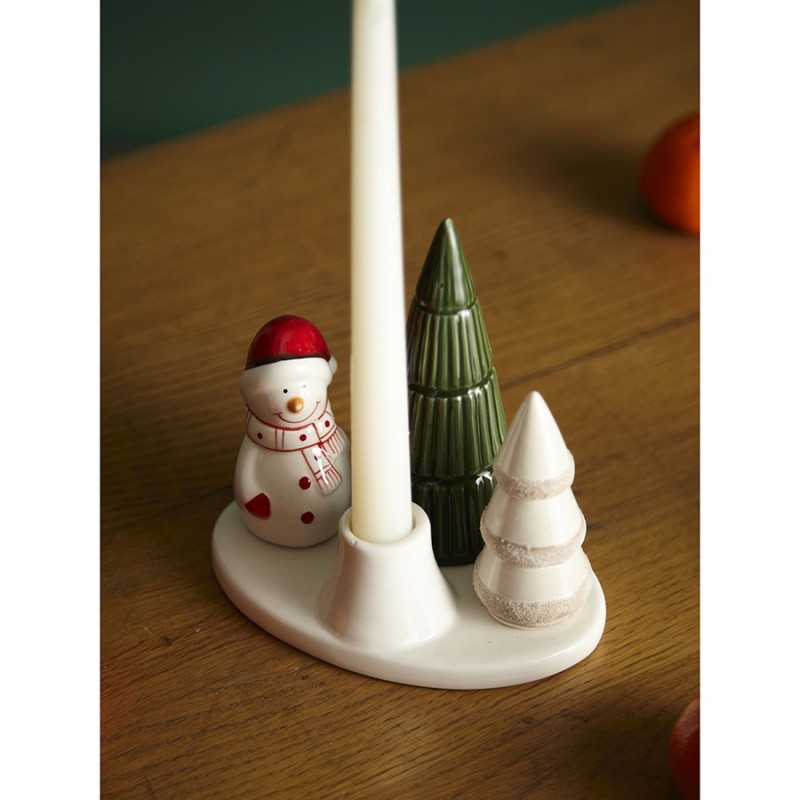 Представьте уютный зимний вечер, за окном падает снег, а в доме мерцает теплый огонек свечи, освещая милую композицию со Снеговиком и ёлочками. Подсвечник новогодний Enchanted forest из коллекции New Year Essential – не просто элемент декора, а настоящая сказка, которая оживает у вас дома.Особенности и преимущества:- Изделие из доломита не боится износа и сохраняет привлекательный вид на протяжении многих лет. - Подсвечник имеет устойчивое основание и подходит для использования с тонкими свечами. - Компактные размеры позволяют разместить его в любом уголке дома для создания новогоднего настроения.Материал: доломит. Размеры: 15x9,9x14,5 см.