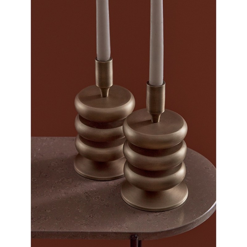 Что может быть привлекательнее огоньков свечей, создающих теплую, непринужденную атмосферу? Подсвечник Stone от дизайнерского бренда Bergenson Bjorn позволит окунуться в мир стильного и уютного освещения. Благодаря необычной форме аксессуар добавит в интерьер интересный акцент и станет центром притяжения взглядов.Особенности и преимущества:- Подсвечник выполнен из алюминия – это делает его легким, прочным, устойчивым к повреждениям и износу. - За счет конструкции специальной формы капли воска не попадают на используемую под свечу поверхность, что обеспечивает удобную и безопасную эксплуатацию. - Компактный аксессуар хорошо смотрится и легко помещается на столе, тумбе и любых других предметах интерьера.! Обращаем ваше внимание, что этот предмет изготовлен вручную и может быть не идеален. Небольшие неровности, потертости и различия в цвете – это не брак, а индивидуальная особенность товара, произведенного ручным способом.Материал: алюминий. Размеры: 11х11х17 см. Цвет: античная латунь.Пыль с подсвечника можно убирать при помощи мягкого влажного материала. Для удаления загрязнений рекомендуется использовать мыльный раствор воды. После очищения аксессуар необходимо вытереть сухой тканью. Запрещается применение абразивов и агрессивной бытовой химии.
