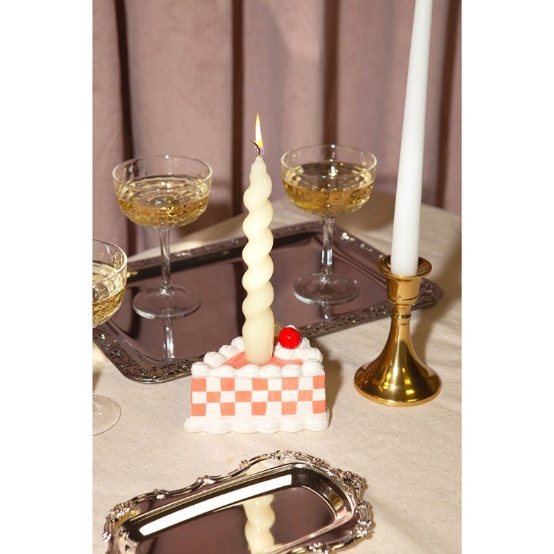 Подсвечник Sweetie – оригинальный элемент декора, способный придать яркости любому интерьеру. Широкое основание обеспечивает устойчивость при использовании. Поместите свечу и зажгите ее – мягкий теплый свет подарит вам прекрасное настроение.Особенности и преимущества: - Изготовлен из устойчивой к износу и экологичной керамики. - Имеет необычный дизайн в виде пирожного, который привлекает внимание. - Надежно фиксирует свечу, не допуская возгорания.Материал: керамика. Размер: 11,5x13,3x8,5 см.Рекомендуется очищать вручную при помощи мягкой губки. Запрещается использование абразивных материалов и агрессивной бытовой химии.