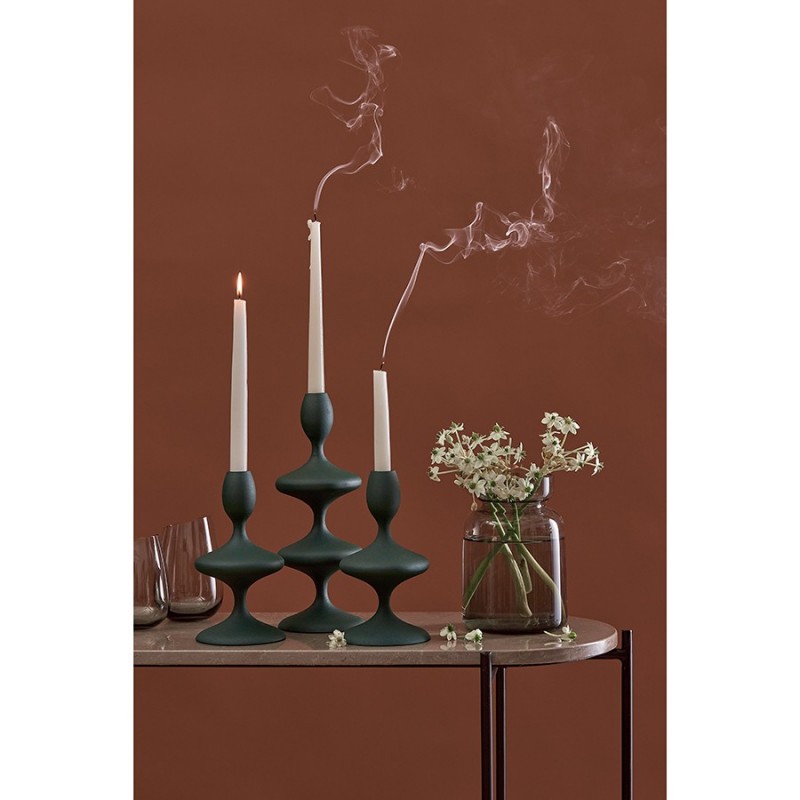Подсвечник Vivlend от бренда Bergenson Bjorn привлекает внимание интересной формой и оригинальным цветовым решением. В минималистичных пространствах этот аксессуар станет ярким акцентом, а в помещениях с современным оформлением поможет сыграть на контрастах и подчеркнуть даже самую необычную дизайнерскую задумку.Особенности и преимущества:- Подсвечник имеет компактные размеры, что позволяет легко разместить его на полке, комоде, столе и других поверхностях. - Необычная форма аксессуара создает неповторимую динамику и игру света, придавая пространству особое очарование. - Изделие выполнено из алюминия – легкого, но прочного материала, устойчивого к коррозии и повреждениям.! Обращаем ваше внимание, что этот предмет изготовлен вручную и может быть не идеален. Небольшие неровности, потертости и различия в цвете – это не брак, а индивидуальная особенность товара, произведенного ручным способом.Материал: алюминий. Размеры: 11х11х20 см. Цвет: хвойный.Пыль с подсвечника можно убирать при помощи мягкого влажного материала. Для удаления загрязнений рекомендуется использовать точечно мыльный раствор воды. После очищения аксессуар необходимо вытереть сухой тканью. Запрещается применение абразивов и агрессивной бытовой химии.