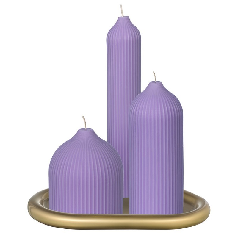 Свеча декоративная цвета лаванды из коллекции Edge в современном дизайне, вдохновленном русскими традициями, отлично подойдет для домашнего декора и создания уютной атмосферы в интерьере. Фактурные грани и округлая поверхность свечи отсылают нас к образу купола – простая и лаконичная форма, плавные изгибы и идеальные пропорции. Изготовлена вручную, без ароматизаторов, поэтому может использоваться для сервировки праздничного стола и повседневных ужинов. Свеча не коптит, так как выполнена из парафина с соевым и пчелиным воском, имеет фитиль из натурального хлопка.Время непрерывного горения – 100 часов. Размер свечи: 8,5х10,5 см. Упаковка: крафтовая коробка.Состав: 55% парафин 40% соевый воск 5% пчелиный воск! Регулярно подрезать фитиль, чтобы его высота не превышала 6-8 мм. Благодаря этому пламя будет ярким и ровным. ! Не оставлять свечу на ветру или сквозняке – это может привести к неравномерному горению и, как следствие, – к образованию сильных подтеков. ! Зажигать свечу, предварительно расположив ее на подсвечнике, если она идет без специального стакана. ! Не оставлять горящую свечу без присмотра. ! Использовать вдали от легковоспламеняющихся материалов. ! Беречь от детей и домашних животных.Важно! Если свеча начала подтекать, огонь следует затушить и дать воску застыть, после чего можно будет зажечь ее повторно. В противном случае может образоваться сильный подтек, а свеча утратит красивый внешний вид и свои первоначальные качества.