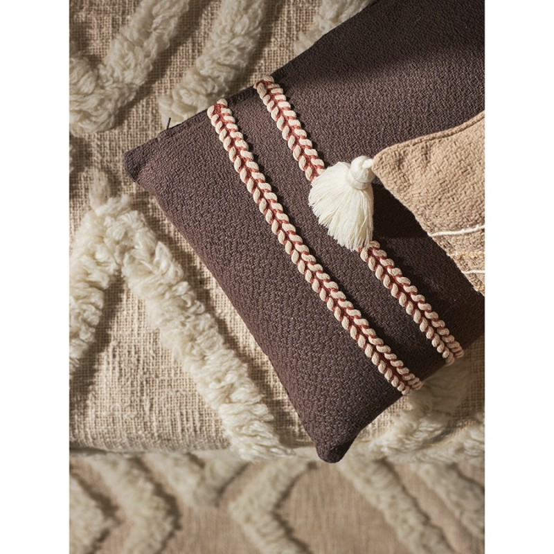 Декоративная подушка Braids из коллекции Ethnic – прекрасный способ сделать любое пространство уютным и оригинальным. Дизайн в этническом стиле дарит эстетическое удовольствие и позволяет добавить яркие акценты в оформление помещения. Используйте ее как самостоятельный декор или сочетайте с другими текстильными изделиями из одноименной линейки, чтобы придать интерьеру завершенный вид.Особенности и преимущества:- Чехол из 100% хлопка отличается прочностью и долговечностью. - Ткань не вызывает аллергических реакций и имеет приятную на ощупь фактуру. - В качестве наполнителя используется эластичный и устойчивый к износу полиэстер. - Изделие соответствуют высоким стандартам качества и экологической безопасности.Размеры: 30х45 см.! Стирка запрещена ! Гладить запрещено ! Барабанная сушка запрещена ! Не отбеливать ! Возможна сухая чисткаДекоративные чехлы, подушки и пледы с объемным декором (вышивкой, помпонами, кисточками, бахромой) нельзя стирать и сушить в машинке. Засохшие пятна можно удалять мягкими щетками путем соскабливания загрязнения в направлении к центру пятна, а влажные — бумажными салфетками или тканью с использованием мыла или мягкого моющего средства. Гладить такие изделия также запрещается. Перед использованием изделия обязательно ознакомьтесь с правилами ухода на этикетке.Обратите внимание, что многие товары из коллекции Ethnic выполнены вручную, поэтому они могут незначительно отличаться друг от друга размером, цветом или рисунком.