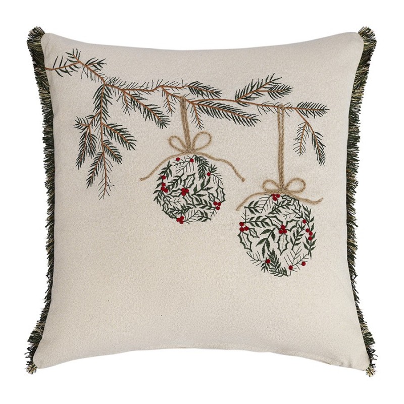 Подушка декоративная Celebrations из коллекции New Year Essential добавит нотку волшебства в любое пространство, создав в нем атмосферу теплоты и уюта. Изображение новогодних игрушек на еловых ветках дарит приятные эмоции и оживляет дизайн. Подушка идеально подходит для гостиной, спальни или детской комнаты.Особенности и преимущества:- Имеет съемный чехол из 100% хлопка – экологичного, прочного, долговечного и гипоаллергенного материала. - Благодаря наполнителю из полиэстера долгое время сохраняет форму, объем, упругость и мало весит. - Выполнена в спокойных тонах, что позволяет легко интегрировать ее в различные дизайнерские решения. - Может использоваться не только в качестве украшения интерьера, но и для поддержки тела во время отдыха или чтения.Основной материал : 100% хлопок. Наполнитель: 100% полиэстер. Декоративные элементы: 100% полиэстер. Размер: 45х45 см.! Стирка запрещена ! Гладить запрещено ! Барабанная сушка запрещена ! Не отбеливать ! Возможна сухая чистка