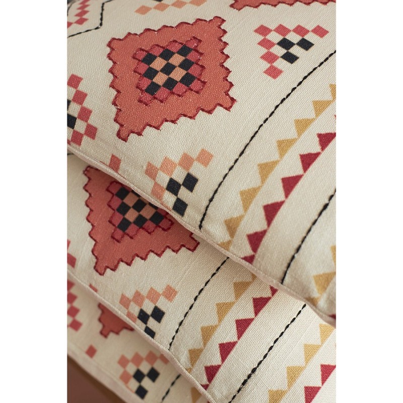Насладитесь уютом и комфортом с декоративной подушкой из коллекции Cultural Heritage, вдохновленной богатством башкирских орнаментов. Этот текстильный аксессуар непременно подчеркнет вашу индивидуальность и идеально впишется в интерьер в этническом, скандинавском или бохо стиле.Особенности и преимущества:- Имеет чехол из 100% хлопка – практичного, долговечного, гипоаллергенного, мягкого и приятного на ощупь материала. - Благодаря наполнителю из полиэстера долгое время сохраняет форму, объем, упругость и мало весит. - Башкирские мотивы в узоре делают ее самодостаточным элементом декора и ярким акцентом в любом интерьере. - Может использоваться не только в качестве украшения интерьера, но и для поддержки тела во время отдыха или чтения.Вдохновением для коллекции Cultural Heritage стало культурное наследие уральских и сибирских народов — эвенов, башкиров, нанайцев и чувашей. Мы внимательно изучили традиционные орнаменты, аккуратно переосмыслили их в современном ключе и бережно перенесли на пледы. Основная идея коллекции - достичь баланса между традиционным и актуальным, поэтому мы уверены, что каждую вещь Cultural Heritage можно вписать практически в любой современный интерьер. Они станут ярким акцентом вашего дома и привнесут в него атмосферу уникальности и самобытности.Основной материал: 100% хлопок. Наполнитель: 100% полиэстер. Размер: 45х45 см.! Стирка запрещена ! Гладить при максимальной температуре 110° C ! Барабанная сушка запрещена ! Не отбеливать ! Возможна сухая чистка