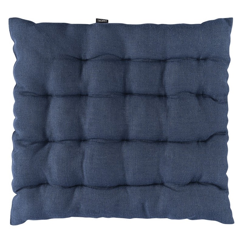 Подушка на стул из стираного льна синего цвета из коллекции Essential – практичное и стильное украшение кухонной мебели. Однотонное изделие в лаконичном дизайне органично впишется в любой интерьер. Подушку можно использовать в качестве подкладки на деревянные или металлические стулья. Благодаря плотному наполнителю из полиэстера она не потеряет форму.Подушки на стул представлены в четырех цветах: синем, сером, горчичном и бежевом.Состав: 100% лен. Размер: 40х40х4 см. Плотность ткани: 280 г/м2.! Максимальная температура стирки 30° C ! Гладить при максимальной температуре 110° C ! Возможна барабанная сушка при низкой температуре ! Не отбеливать ! Возможна сухая чистка