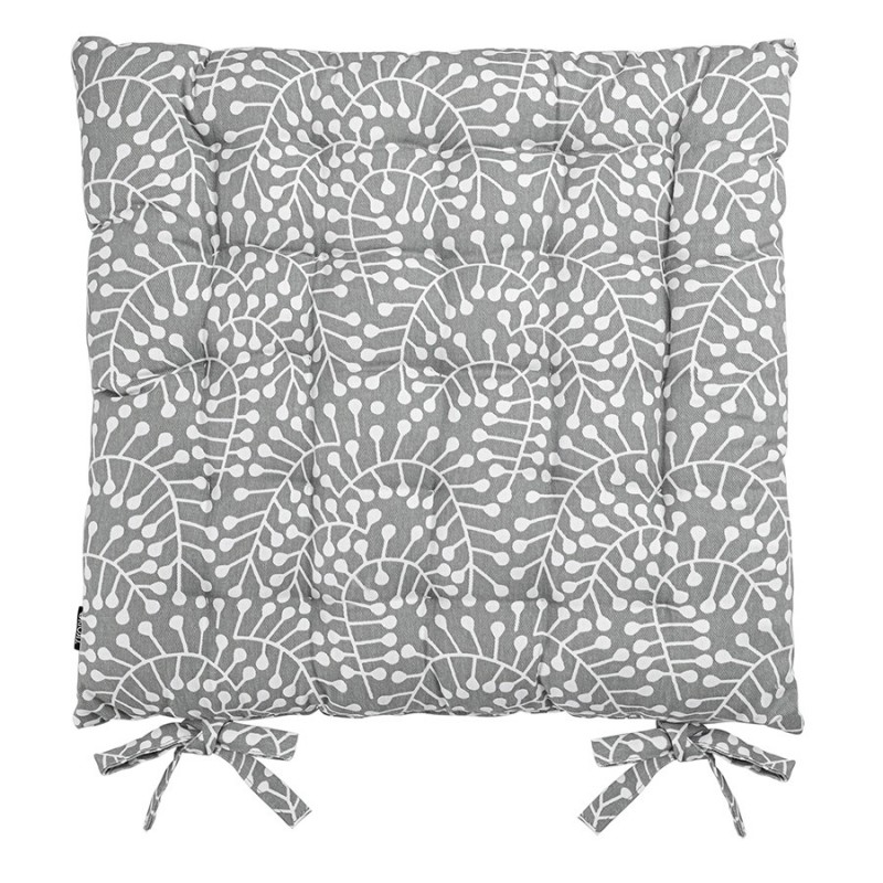 Подушка на стул серого цвета с принтом Спелая Смородина из коллекции Scandinavian touch сделает жесткую поверхность домашней или уличной мебели более комфортной для сидения. Изделие с авторским принтом, разработанным одним из ведущих финских дизайнерских агентств, органично впишется в любой современный интерьер. Чехол подушки выполнен из прочного хлопка, который долго сохраняет привлекательный вид и не деформируется после множества стирок. Благодаря плотному наполнителю из полиэстера изделие сохраняет свою первоначальную форму на протяжении всего срока службы. Подушка легко фиксируется на ножках мебели с помощью специальных завязок.Основной материал – 100% хлопок, наполнитель – 100% полиэстер. Размер: 35х35х4 см.! Максимальная температура стирки 40° C ! Гладить при максимальной температуре 150° C ! Возможна барабанная сушка при низкой температуре ! Не отбеливать ! Возможна сухая чистка