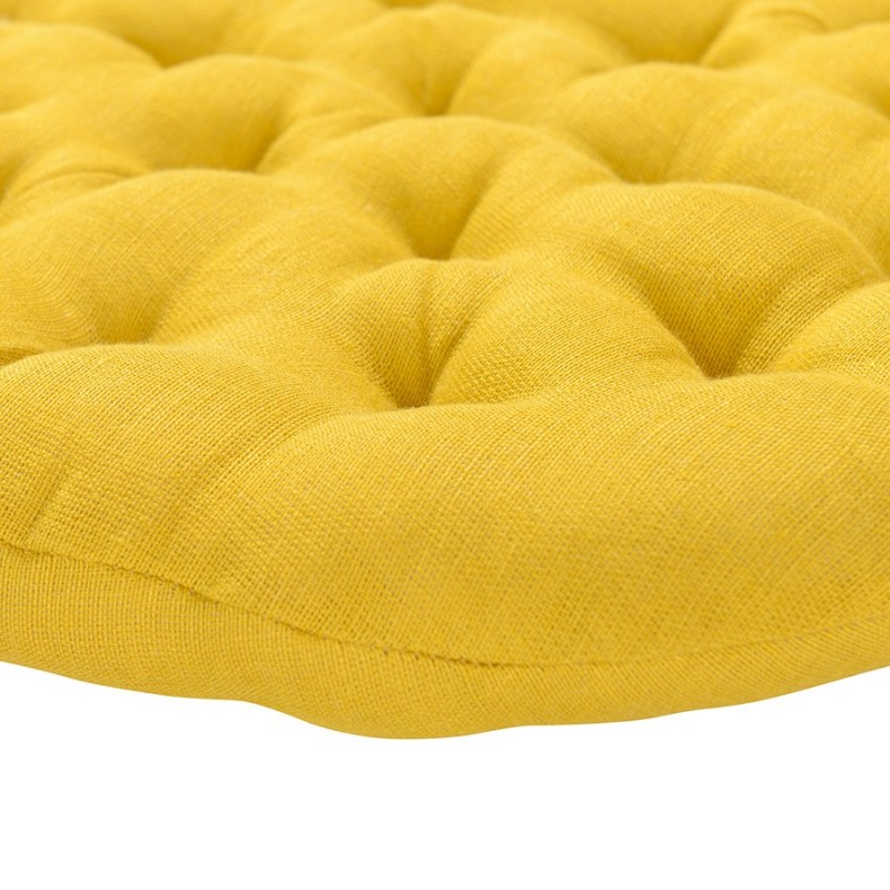 Круглая подушка на стул из стираного льна горчичного цвета из коллекции Essential – практичное и стильное украшение кухонной мебели. Однотонная модель в лаконичном дизайне впишется в любой интерьер. Подушку можно использовать в качестве подкладки на деревянные или металлические стулья. Благодаря плотному наполнителю из полиэстера она не потеряет форму.Состав: 100% лен. Размер: 40х40х4 см. Плотность ткани: 280 г/м2.! Максимальная температура стирки 30° C ! Гладить при максимальной температуре 110° C ! Возможна барабанная сушка при низкой температуре ! Не отбеливать ! Возможна сухая чистка