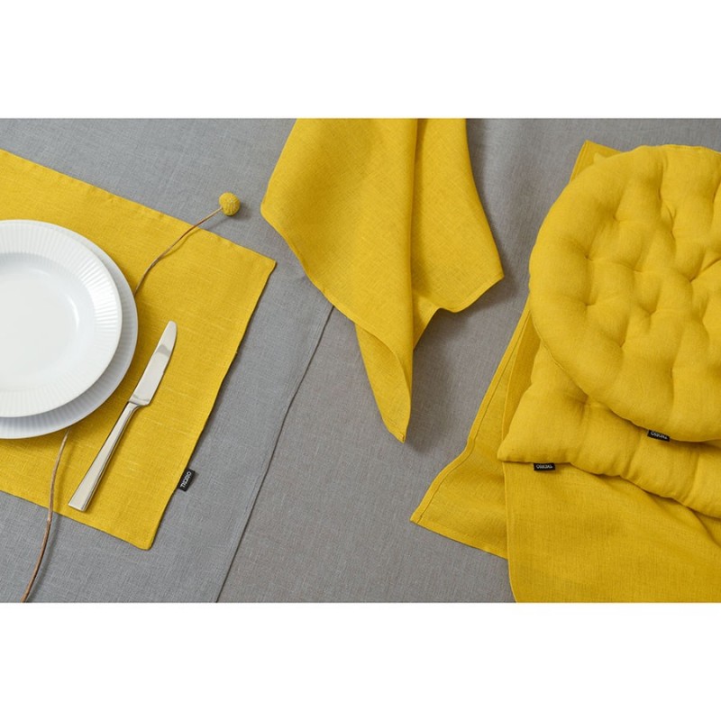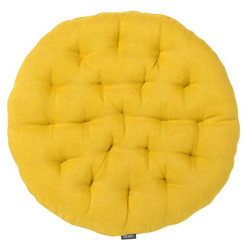 Подушка на стул круглая из стираного льна горчичного цвета из коллекции essential, 40х40x4 см (артикул 3425)