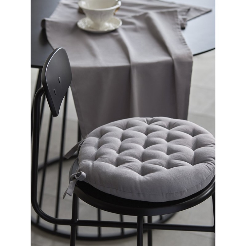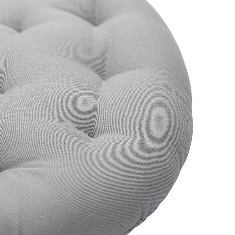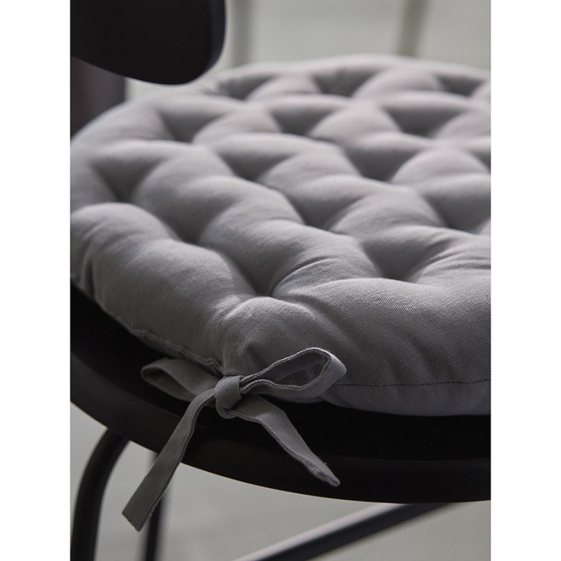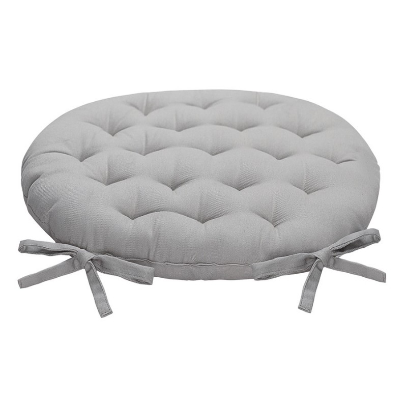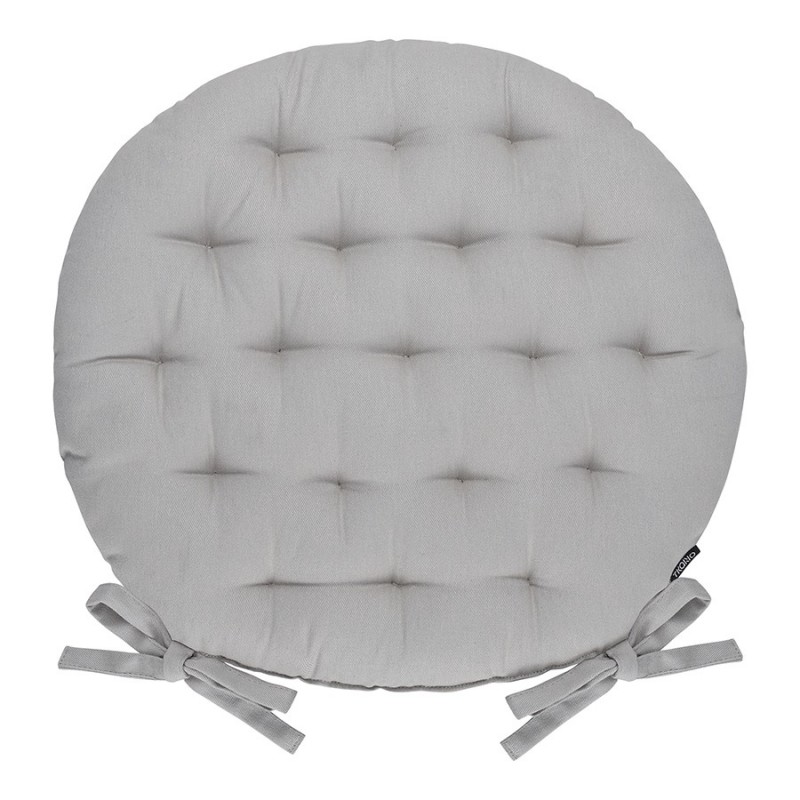 Подушка круглая серого цвета из коллекции Essential станет отличным дополнением к вашей кухонной мебели. Ее можно использовать в качестве мягкой накладки на деревянные или металлические стулья, чтобы сделать их жесткую поверхность более удобной для сидения. Подушка легко фиксируется на ножках мебели с помощью специальных завязок. Однотонное изделие в лаконичном дизайне органично вписывается в любой современный интерьер. Чехол подушки изготовлен из экологичного и долговечного 100% хлопка. В качестве наполнителя используется плотный полиэстер, который позволяет изделию сохранять первоначальную форму на протяжении всего срока службы.Основной материал – 100% хлопок, наполнитель – 100% полиэстер. Диаметр: 35 см.! Максимальная температура стирки 40° C ! Гладить при максимальной температуре 150° C ! Возможна барабанная сушка при низкой температуре ! Не отбеливать ! Возможна сухая чистка