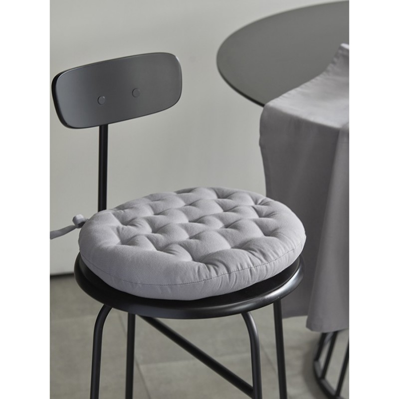 Подушка круглая серого цвета из коллекции Essential станет отличным дополнением к вашей кухонной мебели. Ее можно использовать в качестве мягкой накладки на деревянные или металлические стулья, чтобы сделать их жесткую поверхность более удобной для сидения. Подушка легко фиксируется на ножках мебели с помощью специальных завязок. Однотонное изделие в лаконичном дизайне органично вписывается в любой современный интерьер. Чехол подушки изготовлен из экологичного и долговечного 100% хлопка. В качестве наполнителя используется плотный полиэстер, который позволяет изделию сохранять первоначальную форму на протяжении всего срока службы.Основной материал – 100% хлопок, наполнитель – 100% полиэстер. Диаметр: 35 см.! Максимальная температура стирки 40° C ! Гладить при максимальной температуре 150° C ! Возможна барабанная сушка при низкой температуре ! Не отбеливать ! Возможна сухая чистка