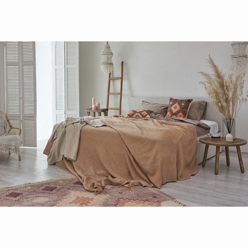 Покрывало двухсторонее из многослойного муслина цвета охры из коллекции Essential сделает интерьер спальни уютным и подарит чувство комфорта при использовании. Легкий, дышащий материал на основе экологичного хлопкового волокна приятный на ощупь, хорошо впитывает влагу, не электризуется и не вызывает аллергию. За счет специального переплетения нитей в каждом из четырех слоев ткань имеет интересную фактуру, обладает высокой плотностью, устойчивостью к износу, не скатывается и хорошо держит форму. Элегантная простота муслинового покрывала позволяет вписать его в различные стилевые решения интерьера: сканди, кантри, прованс, эклектика, бохо, эко, минимализм и другие.Состав: 100% хлопок. Размеры: 230х250 см.! Максимальная температура стирки 40° C ! Гладить запрещено ! Возможна барабанная сушка при низкой температуре ! Не отбеливать ! Сухая чистка запрещена