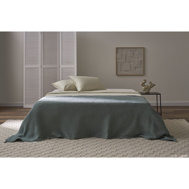 Покрывало вафельное из хлопка цвета шалфея из коллекции Essential станет необычным акцентом в интерьере благодаря своей интересной фактуре. Мягкое и приятное на ощупь – оно создано, чтобы дарить тепло и делать любое пространство уютным и комфортным. Им можно красиво застелить диван или кровать, а также использовать его в качестве пледа.Особенности и преимущества:- Гипоаллергенный 100% хлопок отличается прочностью и долговечностью, не электризуется, не притягивает пыль, устойчив к образованию катышков. - Благодаря необычной “вафельной” фактуре покрывало выглядит стильно, при этом простое в уходе и практически не мнется. - Изделие представлено в нескольких цветовых решениях и двух размерах, что позволяет выбрать наиболее подходящий вариант. - Однотонный текстиль легко сочетается с предметами интерьера любых оттенков.Материал: 100% хлопок. Размер: 230х250 см.! Деликатная стирка при температуре 30° C ! Гладить при максимальной температуре 110° C ! Барабанная сушка запрещена ! Не отбеливать ! Сухая чистка запрещена