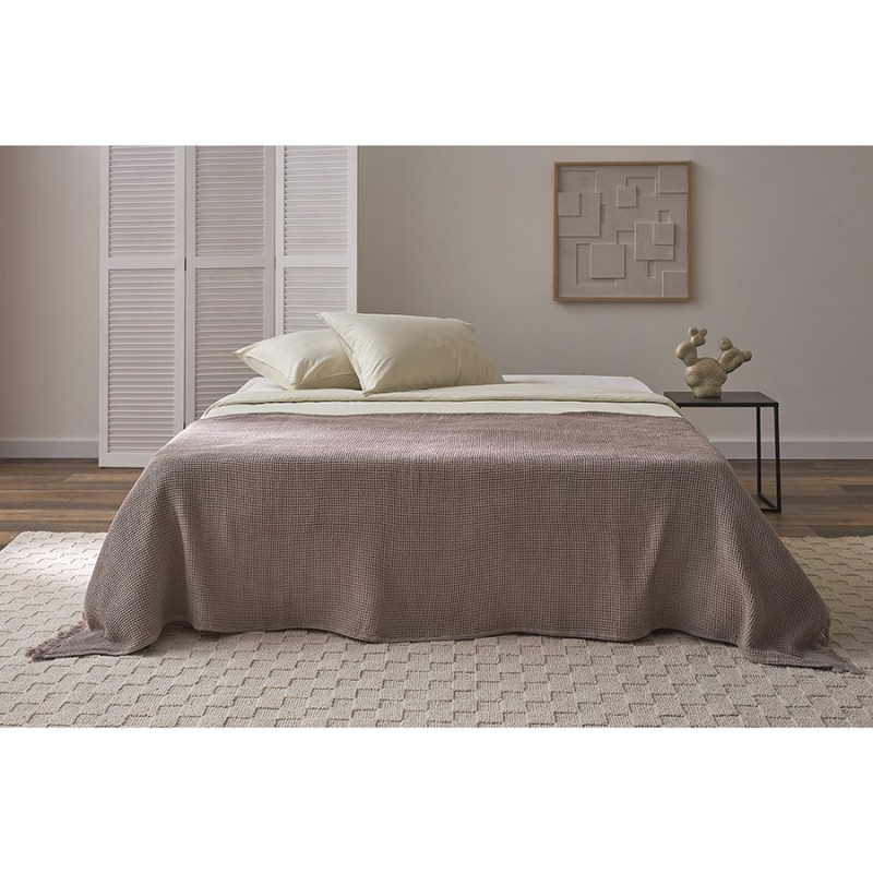 Покрывало вафельное из хлопка серо-бежевого цвета из коллекции Essential станет необычным акцентом в интерьере благодаря своей интересной фактуре. Мягкое и приятное на ощупь – оно создано, чтобы дарить тепло и делать любое пространство уютным и комфортным. Им можно красиво застелить диван или кровать, а также использовать его в качестве пледа.Особенности и преимущества:- Гипоаллергенный 100% хлопок отличается прочностью и долговечностью, не электризуется, не притягивает пыль, устойчив к образованию катышков. - Благодаря необычной “вафельной” фактуре покрывало выглядит стильно, при этом простое в уходе и практически не мнется. - Изделие представлено в нескольких цветовых решениях и двух размерах, что позволяет выбрать наиболее подходящий вариант. - Однотонный текстиль легко сочетается с предметами интерьера любых оттенков.Материал: 100% хлопок. Размер: 230х250 см.! Деликатная стирка при температуре 30° C ! Гладить при максимальной температуре 110° C ! Барабанная сушка запрещена ! Не отбеливать ! Сухая чистка запрещена