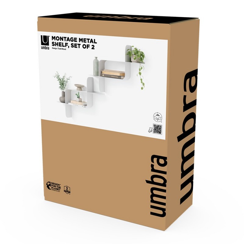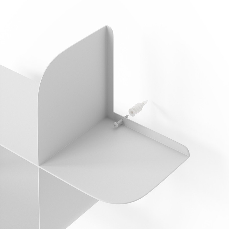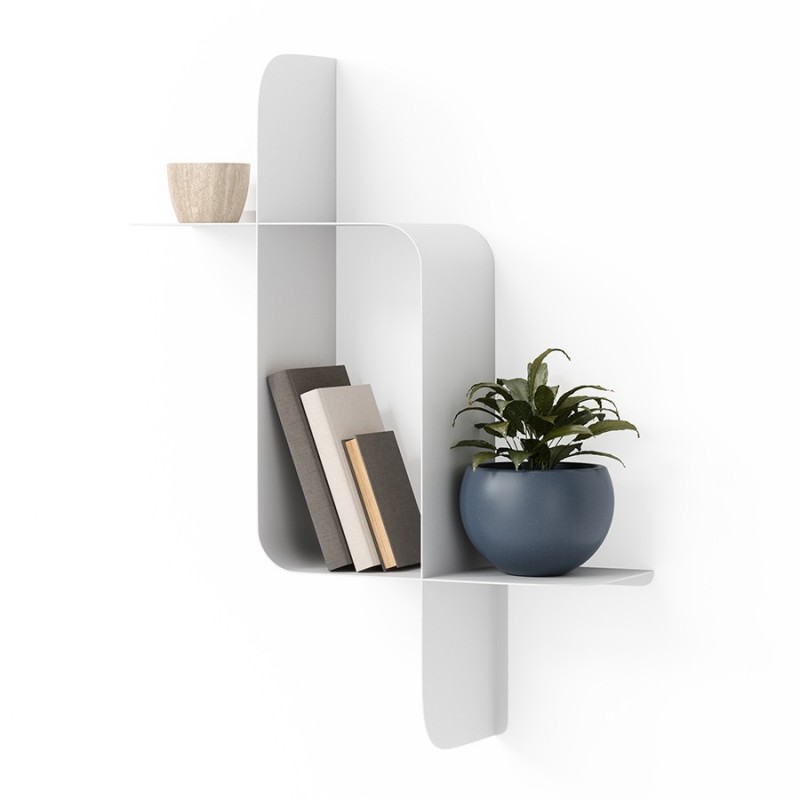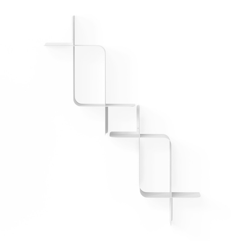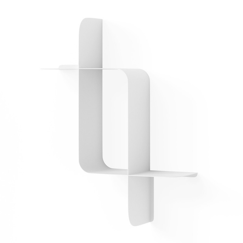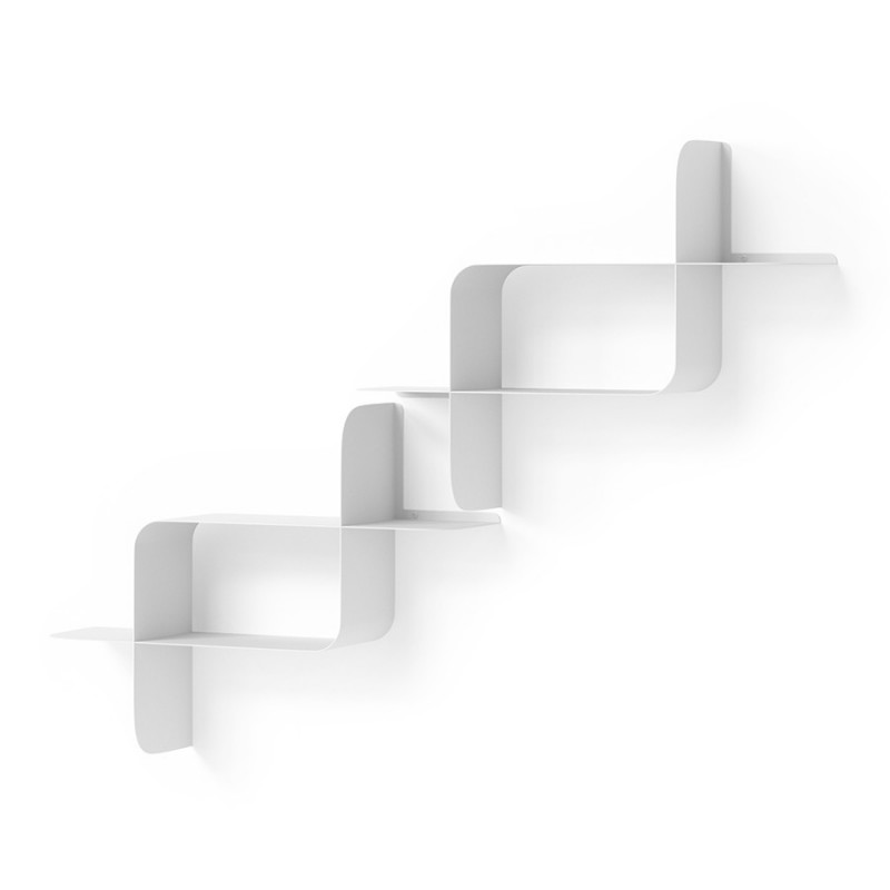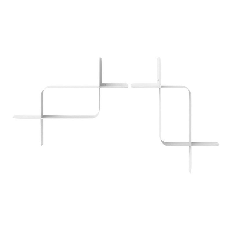 Набор из двух металлических настенных полок Montage идеально подойдет для компактного хранения вещей в любой из комнат и станет стильным акцентом интерьера. За счет уникальной изогнутой формы образуется восемь поверхностей, которые можно занять под книгами, декором, комнатными растениями. В зависимости от особенностей интерьера, конструкцию можно крепить на стене как горизонтально, так и вертикально. Предметы отлично интегрируются в различными стилевыми решениями. Полки подходят для прихожей, гостиной, спальни, кабинета, офиса.Материалы: сталь. Размеры: 61х15х47 см. Максимальная нагрузка: 6,8 кг. Цвет: белый.Пыль и загрязнения с поверхностей можно удалять при помощи мягкого влажного материала. Запрещается использование абразивов и агрессивной бытовой химии.