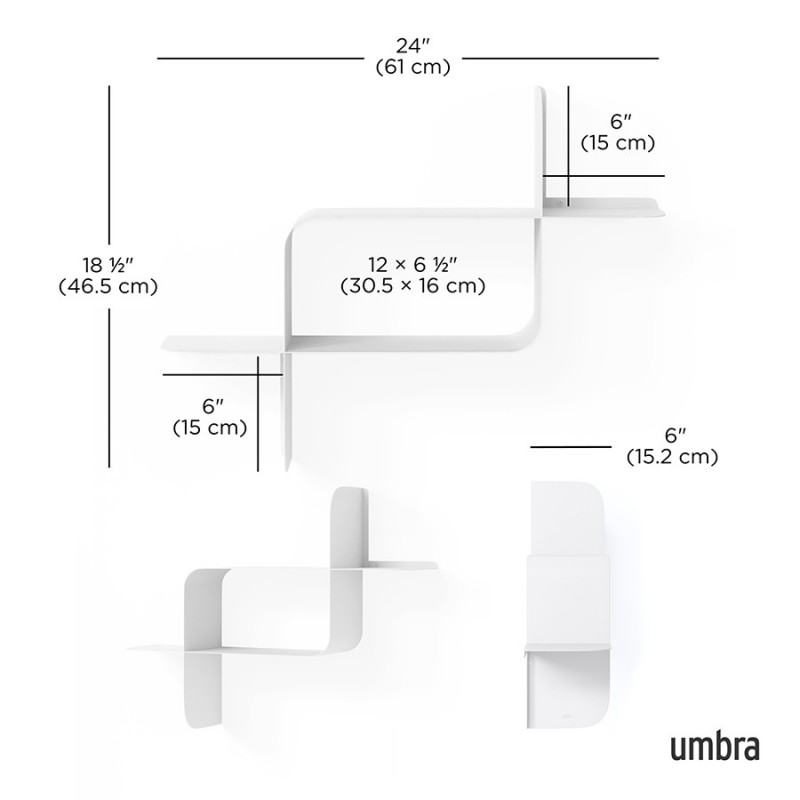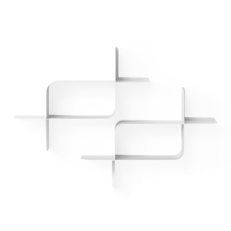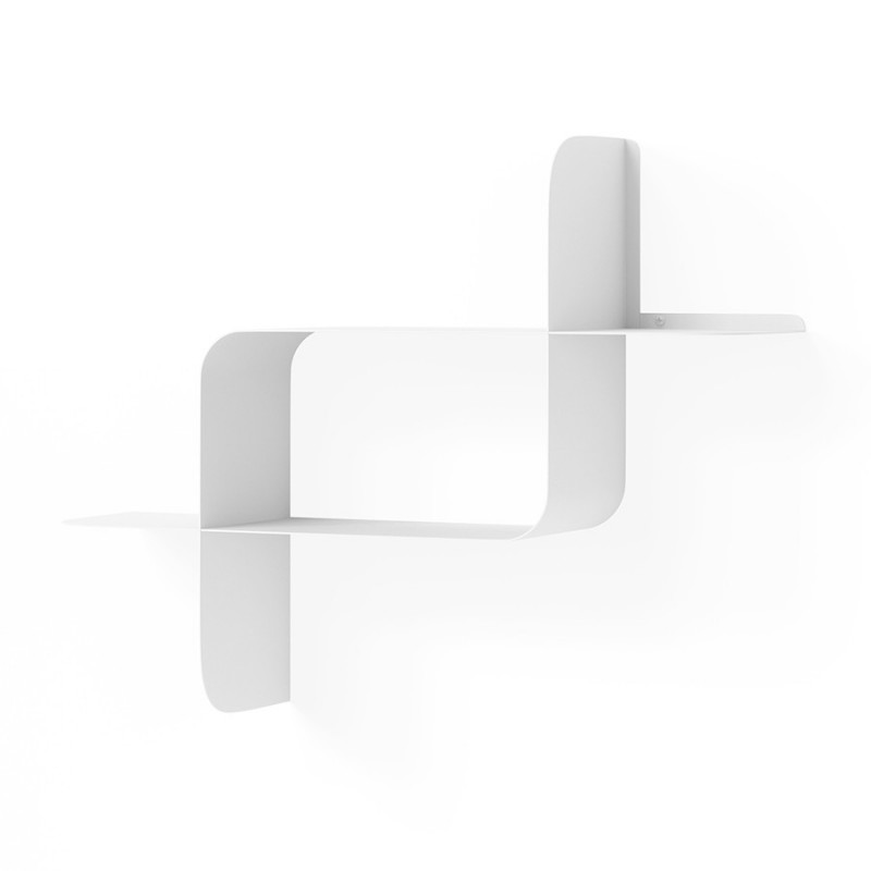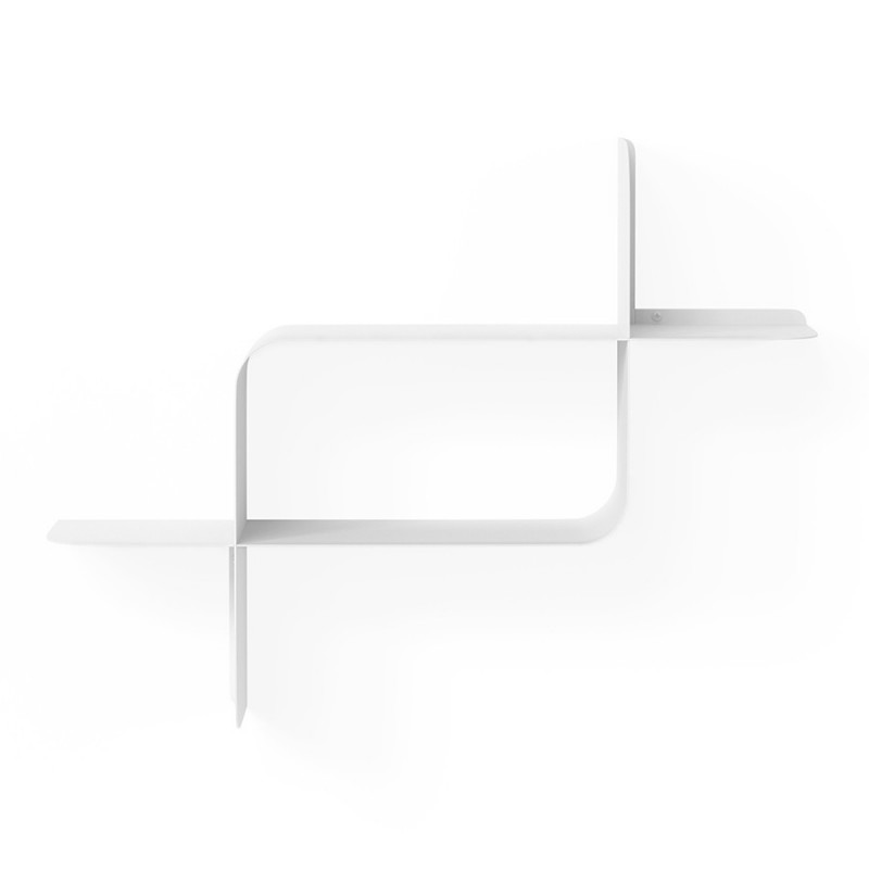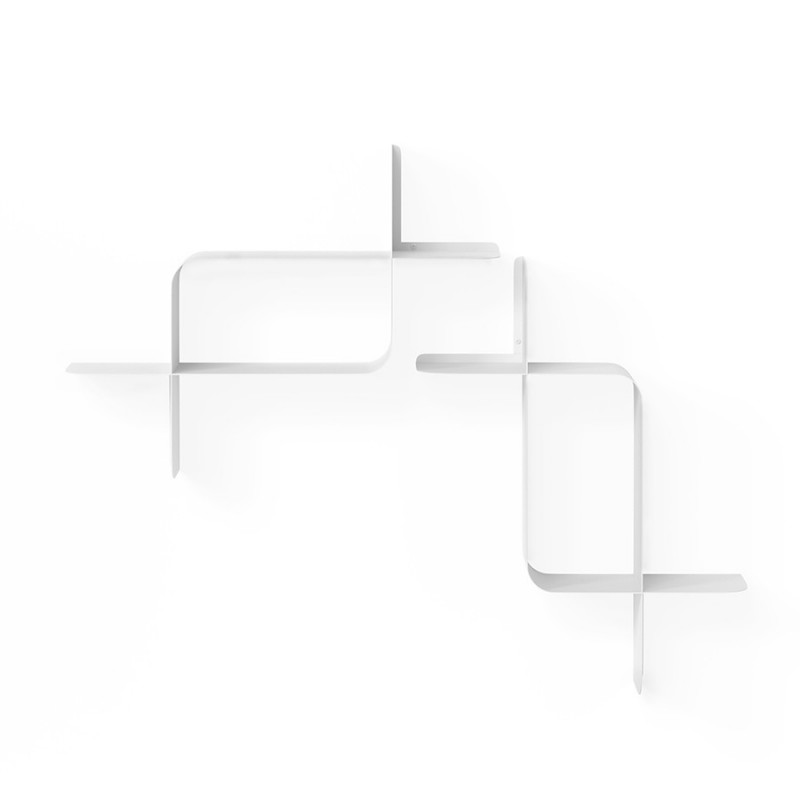 Набор из двух металлических настенных полок Montage идеально подойдет для компактного хранения вещей в любой из комнат и станет стильным акцентом интерьера. За счет уникальной изогнутой формы образуется восемь поверхностей, которые можно занять под книгами, декором, комнатными растениями. В зависимости от особенностей интерьера, конструкцию можно крепить на стене как горизонтально, так и вертикально. Предметы отлично интегрируются в различными стилевыми решениями. Полки подходят для прихожей, гостиной, спальни, кабинета, офиса.Материалы: сталь. Размеры: 61х15х47 см. Максимальная нагрузка: 6,8 кг. Цвет: белый.Пыль и загрязнения с поверхностей можно удалять при помощи мягкого влажного материала. Запрещается использование абразивов и агрессивной бытовой химии.