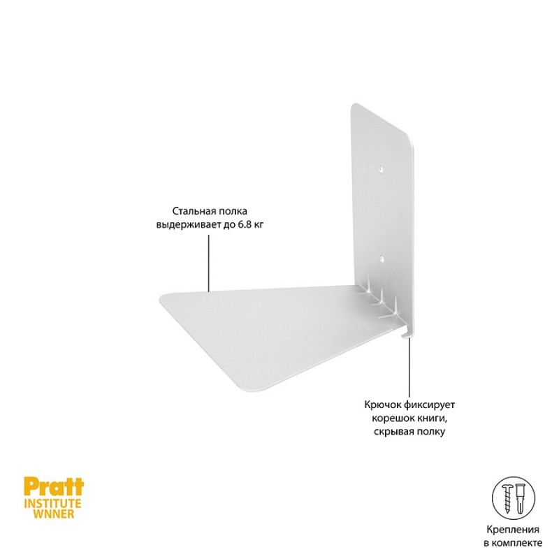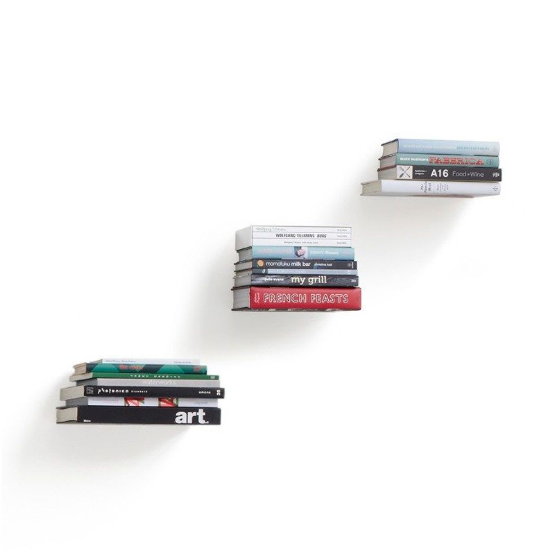 Удивительная книжная полка – победитель конкурса FORM во Франкфурте и международных соревнований за лучший дизайн Pratt design competition.В комплект входят 3 полки. Полка легко крепится к стене, создавая иллюзию парения книг в воздухе. Монтажное оборудование входит в комплект. Размеры 1 полки: 13х13х14 см.