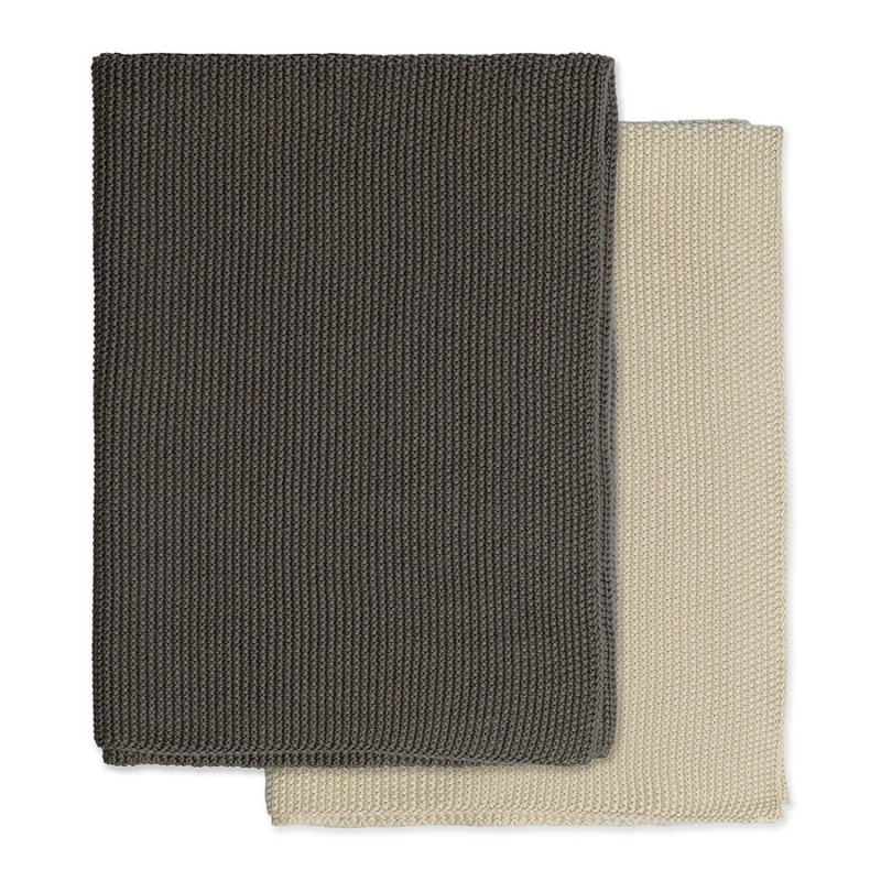 Набор из двух кухонных вязаных полотенец из коллекции Essential станет помощником на кухне и настоящим украшением ее интерьера. Сделанные из 100% хлопка, изделия обладают рядом уникальных характеристик, которые сделают ваш быт более комфортным.Особенности и преимущества:- Мягкий, при этом прочный материал хорошо впитывает влагу, быстро сохнет, не оставляет ворсинок на посуде и других поверхностях. - Полотенца бежевого и темно-серого цвета прекрасно вписываются в любой интерьер, а их вязаная текстура добавляет в оформление нотку утонченности. - Текстильные изделия легко переносят стирку в стиральной машине, сохраняя свой привлекательный вид.Материал: 100% хлопок. Плотность: 555 г/м2. Размеры: 40х60 см.! Деликатная стирка при температуре 60° C ! Гладить при максимальной температуре 110° C ! Возможна барабанная сушка при низкой температуре ! Не отбеливать ! Сухая чистка запрещена