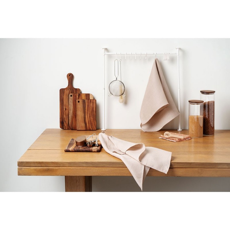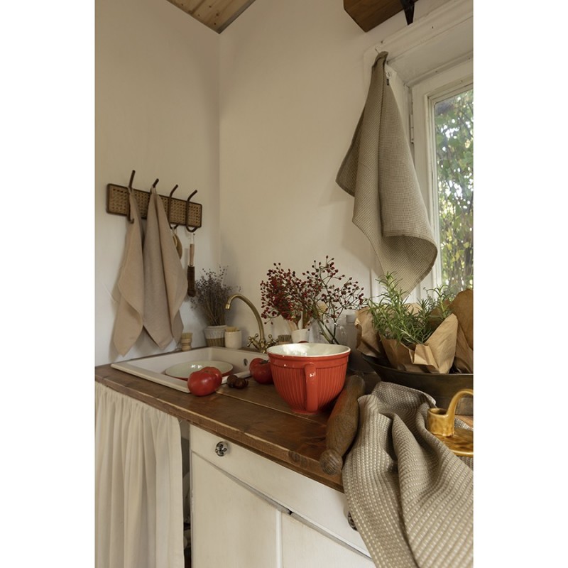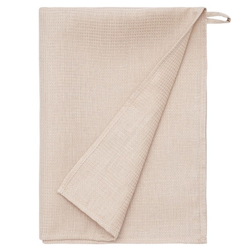 Набор из двух вафельных полотенец бежевого цвета для кухни из коллекции Essential – отличный вариант для ценителей спокойных природных оттенков. Изделия изготовлены из умягченного льна, который хорошо впитывает влагу и быстро сохнет. Как известно, лен не только прекрасно смотрится в интерьере, но и предотвращает развитие бактерий, что особенно актуально для кухни и столовой. Полотенце можно повесить на крючок, благодаря удобной петельке.Данная линейка товаров представлена в трех цветах: сером, бежевом и темно-синем.Кухонные полотенца упакованы в маленькую крафтовую коробку, поэтому могут стать приятным подарком как себе, так и близкому человеку.Состав: 100% лен. Размер: 50х70 см. Плотность ткани: 280 г/м2.! Максимальная температура стирки 30° C ! Гладить при максимальной температуре 110° C ! Возможна барабанная сушка при низкой температуре ! Не отбеливать ! Возможна сухая чистка