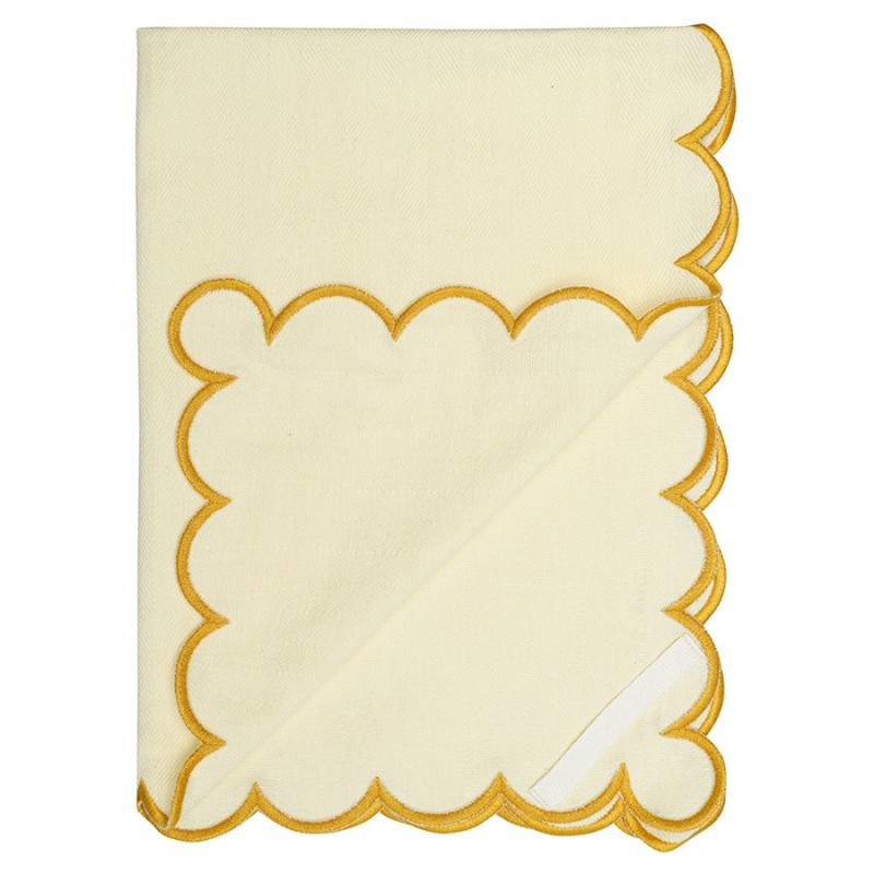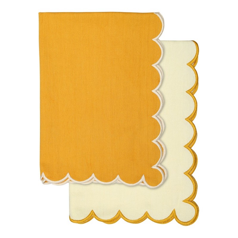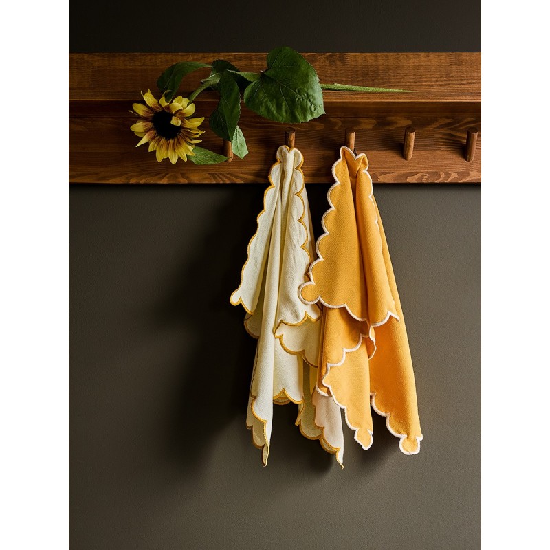 Набор кухонных полотенец с контрастным кантом горчичного цвета из коллекции Trendy Ruffles идеально подойдет для повседневных задач и в качестве стильного акцента. Текстиль с волнистой отделкой, напоминающей изящные раковины морских гребешков, стал ярким элементом стиля Ар Деко – и сейчас возвращается в моду, появляясь в самых актуальных интерьерных решениях.Особенности и преимущества:- Прочный и долговечный 100% хлопок хорошо впитывает влагу, быстро сохнет, не оставляет ворсинок на посуде и других поверхностях. - Полотенца имеют трендовый дизайн, что позволяет использовать их в качестве стильного акцента. - Текстильные изделия легко переносят стирку в стиральной машине, сохраняя привлекательный вид. - Данная линейка представлена в разных цветовых решениях, что позволяет выбрать наиболее подходящий вариант, в зависимости от оформления интерьера и личных предпочтений.Материал: 100% хлопок. Размеры: 50х70 см.! Деликатная стирка при температуре 30° C ! Гладить при максимальной температуре 110° C ! Возможна барабанная сушка при низкой температуре ! Не отбеливать ! Сухая чистка запрещена
