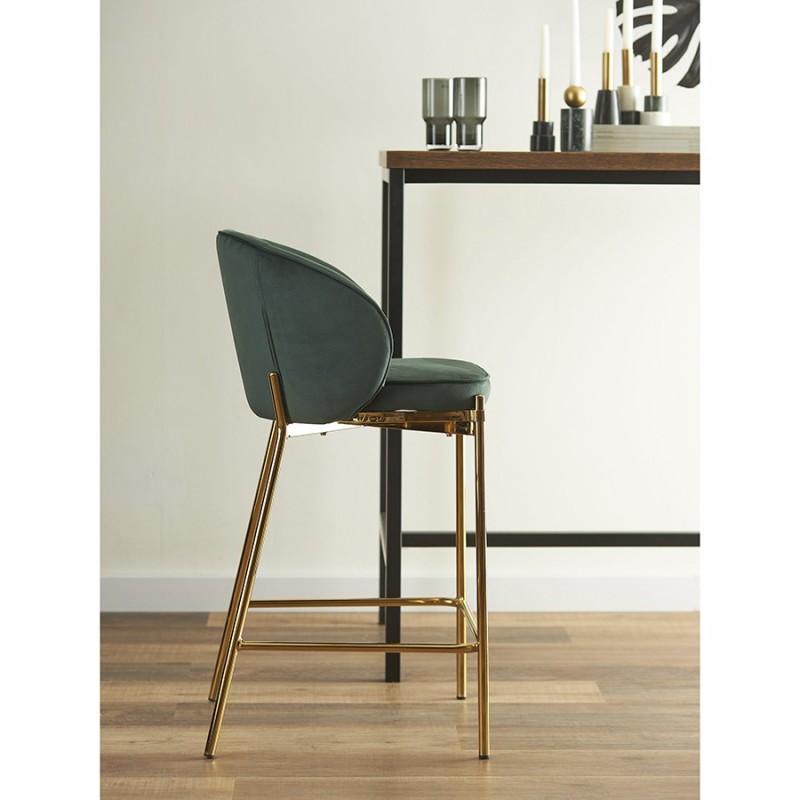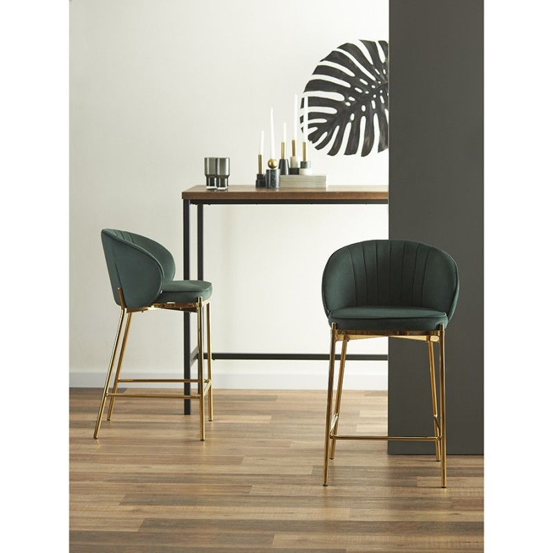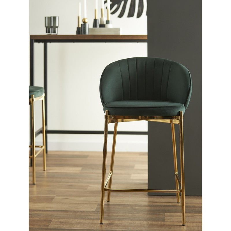 Стул Coral создаст условия для погружения в мир комфорта и элегантности и поможет придать интерьеру изысканный вид. Этот стильный предмет мебели станет идеальным дополнением кухонного острова, пространства кафе или ресторана.Комфорт во время отдыха на полубарном стуле создается за счет мягкого сиденья с наполнителем из пенополиуретана и высокой закругленной спинки. Обивка из бархатистого велюра, украшенная декоративной строчкой, придает модели особый шарм. Эстетический потенциал материала настолько высок, что ему сложно найти конкурентов. Помимо презентабельного вида и приятных тактильных ощущений, ткань обладает хорошими эксплуатационными характеристиками, такими как прочность, износоустойчивость и долговечность. Ножки мебели выполнены из железа с гальваническим покрытием, что обеспечивает конструкции надежность.Стул полубарный Coral станет отличным выбором для поклонников стилей поп-арт, неоклассика, гранж, прованс, фьюжн или лаунж.Материалы: железо, фанера, 100% полиэстер, пенополиуретан. Размеры: 52х50х91 см. Высота сиденья: 68,5 см. Ширина сиденья: 43 см. Глубина сиденья: 36 см. Высота спинки: 28 см. Ширина спинки: 36 см. Высота подножки: 20 см. Максимальная нагрузка: 120 кг. Цвет: темно-зеленый.Рекомендуется регулярно пылесосить мебель с помощью специальной насадки – резиновой или мягкой щетки. Образовавшиеся пятна можно удалять губкой или салфеткой со слабым мыльным раствором воды. Запрещается использовать абразивные материалы и агрессивную бытовую химию.