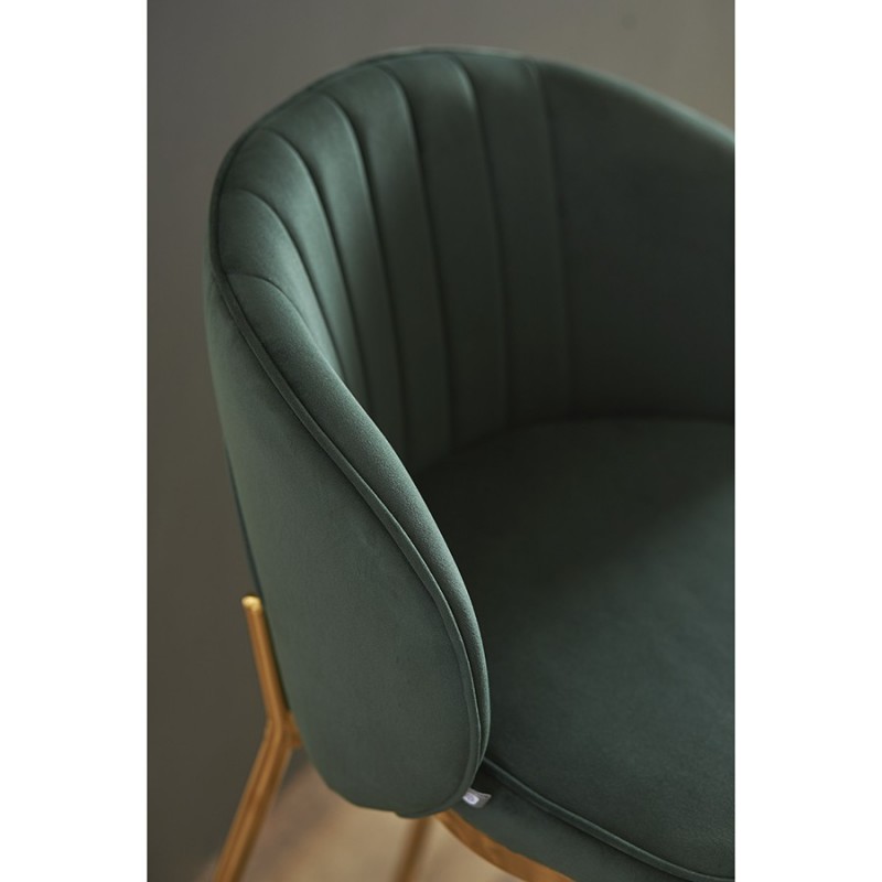 Стул Coral создаст условия для погружения в мир комфорта и элегантности и поможет придать интерьеру изысканный вид. Этот стильный предмет мебели станет идеальным дополнением кухонного острова, пространства кафе или ресторана.Комфорт во время отдыха на полубарном стуле создается за счет мягкого сиденья с наполнителем из пенополиуретана и высокой закругленной спинки. Обивка из бархатистого велюра, украшенная декоративной строчкой, придает модели особый шарм. Эстетический потенциал материала настолько высок, что ему сложно найти конкурентов. Помимо презентабельного вида и приятных тактильных ощущений, ткань обладает хорошими эксплуатационными характеристиками, такими как прочность, износоустойчивость и долговечность. Ножки мебели выполнены из железа с гальваническим покрытием, что обеспечивает конструкции надежность.Стул полубарный Coral станет отличным выбором для поклонников стилей поп-арт, неоклассика, гранж, прованс, фьюжн или лаунж.Материалы: железо, фанера, 100% полиэстер, пенополиуретан. Размеры: 52х50х91 см. Высота сиденья: 68,5 см. Ширина сиденья: 43 см. Глубина сиденья: 36 см. Высота спинки: 28 см. Ширина спинки: 36 см. Высота подножки: 20 см. Максимальная нагрузка: 120 кг. Цвет: темно-зеленый.Рекомендуется регулярно пылесосить мебель с помощью специальной насадки – резиновой или мягкой щетки. Образовавшиеся пятна можно удалять губкой или салфеткой со слабым мыльным раствором воды. Запрещается использовать абразивные материалы и агрессивную бытовую химию.