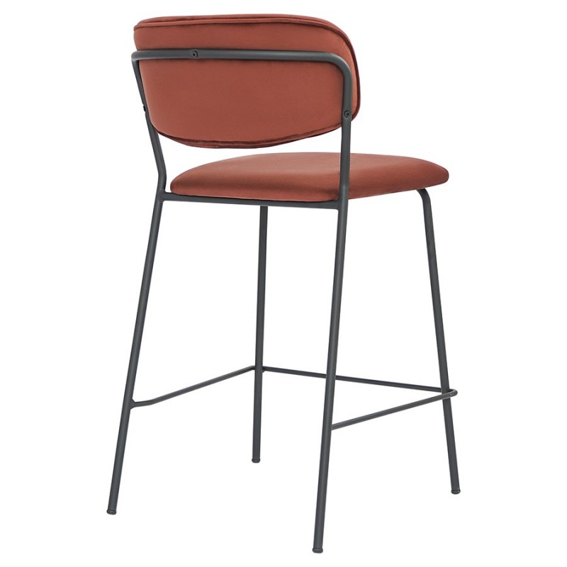 Стул полубарный Eirill с обивкой из бархатистого велюра смотрится стильно и благородно. Материал приятный на ощупь, износостойкий и нетребовательный в уходе. Комфорт при сидении достигается за счет широкой, полукруглой спинки, глубокой посадки и высоких подлокотников с мягкими накладками. Плавные формы и декоративная строчка делают дизайн элегантным. Практичность и долговечность мебели обеспечивает прочный и надежный железный каркас. Наличие специальной перекладины позволяет удобно разместить ноги во время отдыха. Такой стул великолепно дополнит барную зону в жилом помещении, кафе или ресторане. Модель органично сочетается с такими интерьерными решениями, как неоклассика, фьюжн, эклектика, поп-арт, гранж и другими.Материалы: 100% полиэстер, фанера, железо, поролон. Размеры: 48х54,5х90 см. Высота сиденья: 65 см. Максимальная нагрузка: 120 кг. Цвет: кирпичный.Рекомендуется регулярно пылесосить мебель с помощью специальной насадки. Загрязнения можно удалять при помощи мягкой влажной ткани или губки с мыльным раствором воды.