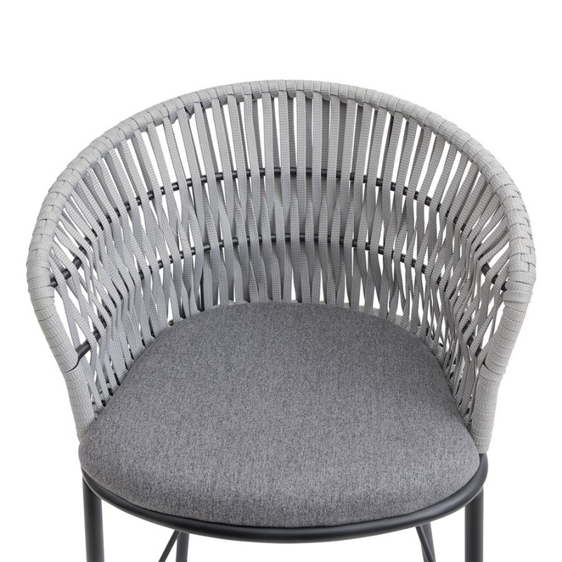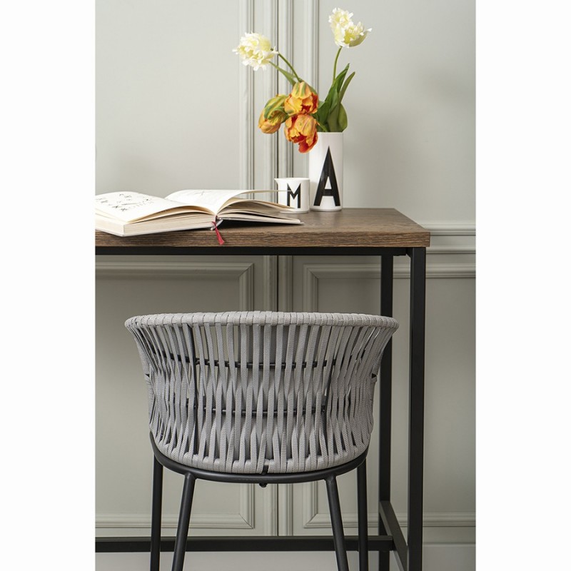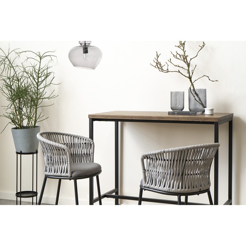 Полубарный стул с плетеным дизайном Haugen поможет в создании комфортного пространства с уютной, расслабленной атмосферой. Такой предмет мебели великолепно дополнит барную зону на домашней кухне, в кафе или ресторане. Широкая спинка, плавно переходящая в подлокотники, глубокая посадка и специальная подножка обеспечивают комфорт во время сидения. Обивка из рогожки устойчива к износу. Материал прочный и нетребовательный в уходе. Стул отлично сочетается с таким стилевыми направлениями, как прованс, кантри, этника, скандинавский, средиземноморский и другие.Материалы: 100% полиэстер, фанера, поролон, железо. Размеры: 53х58х92 см. Высота сиденья: 66 см. Ширина сиденья: 38 см. Глубина сиденья: 42 см. Высота спинки: 31 см. Ширина спинки: 40 см. Высота подножки: 22 см. Максимальная нагрузка: 120 кг. Цвет: темно-серый/светло-серый.Рекомендуется регулярно пылесосить мебель с помощью специальной насадки. Загрязнения можно удалять при помощи мягкой влажной ткани или губки с мыльным раствором воды.