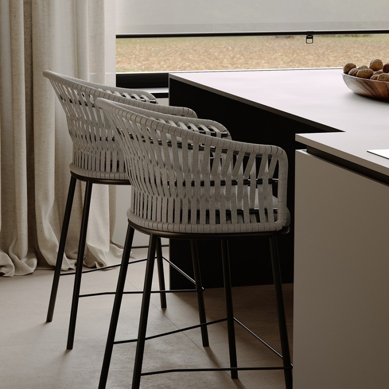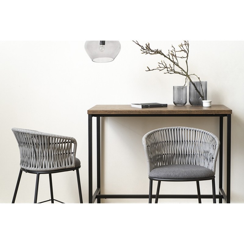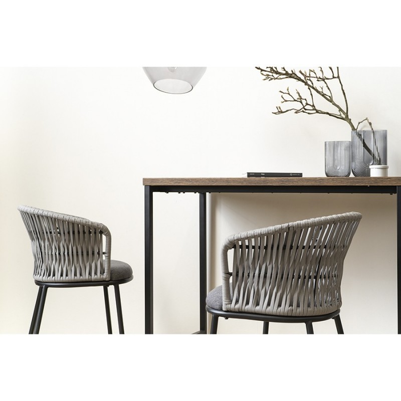 Полубарный стул с плетеным дизайном Haugen поможет в создании комфортного пространства с уютной, расслабленной атмосферой. Такой предмет мебели великолепно дополнит барную зону на домашней кухне, в кафе или ресторане. Широкая спинка, плавно переходящая в подлокотники, глубокая посадка и специальная подножка обеспечивают комфорт во время сидения. Обивка из рогожки устойчива к износу. Материал прочный и нетребовательный в уходе. Стул отлично сочетается с таким стилевыми направлениями, как прованс, кантри, этника, скандинавский, средиземноморский и другие.Материалы: 100% полиэстер, фанера, поролон, железо. Размеры: 53х58х92 см. Высота сиденья: 66 см. Ширина сиденья: 38 см. Глубина сиденья: 42 см. Высота спинки: 31 см. Ширина спинки: 40 см. Высота подножки: 22 см. Максимальная нагрузка: 120 кг. Цвет: темно-серый/светло-серый.Рекомендуется регулярно пылесосить мебель с помощью специальной насадки. Загрязнения можно удалять при помощи мягкой влажной ткани или губки с мыльным раствором воды.