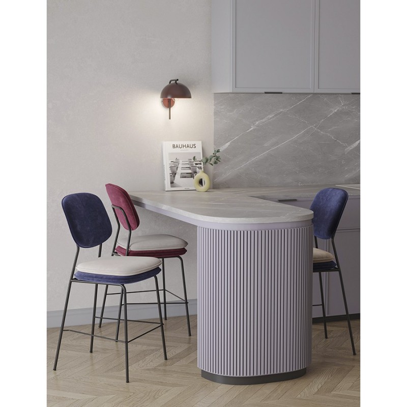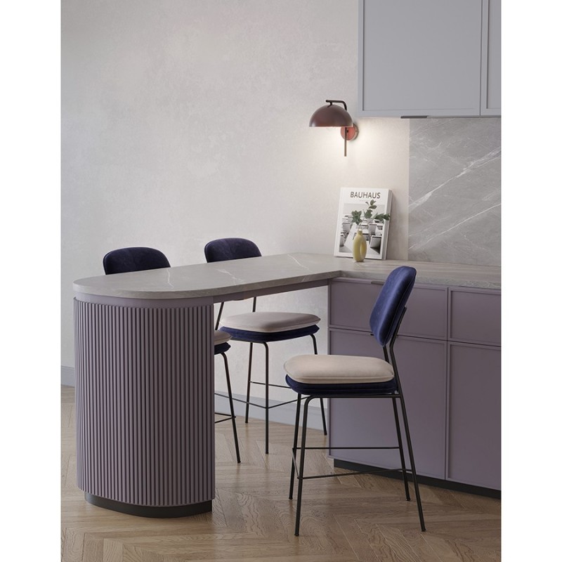 Стул Pea полубарный с мягкой обивкой из бархатистого велюра станет настоящим украшением интерьера и идеальным выбором для ценителей качественной и элегантной мебели.Особенности и преимущества:- Обивка из велюра создает приятные тактильные ощущения, смотрится презентабельно, придавая мебели изысканный вид. - Удобное сиденье с наполнителем из пенополиуретана и спинка с обивкой обеспечивают комфортную посадку. - Ножки из железа имеют порошковое покрытие, которое защищает их поверхность от коррозии, потускнения цвета и механических повреждений. - Стабильная и прочная конструкция делает стул устойчивым, надежным и долговечным. - Дизайн актуален для классических и современных стилевых направлений.Перефразируя слова известного британского дизайнера Уильяма Морриса, дом – это не место для бесполезных и некрасивых вещей, и уникальная коллекция Pea является ярким тому подтверждением. В ее основе лежит сказка “Принцесса на горошине”, и ее главная цель – пробудить ребенка в каждом из нас. Мы верим, что предметы должны быть не просто функциональными, но и нести в себе определенный смысл. Поэтому мебель из нашей новой коллекции не только приносит комфорт в ваш дом, но и рассказывает захватывающую историю.Первыми товарами линейки стали предметы мебели для спальни, сегодня она уже включает в себя пуфы, банкетки и стулья. Главный мотив – двойная подушка, которая напоминает нам о сказочном испытании принцессы. Основные особенности коллекции – пуговицы-горошины, подушки квадратной формы с закругленными краями и оригинальные ножки в виде перевернутой буквы Y, которые делают дизайн живым и непринужденным.Материалы: 100% полиэстер, пенополиуретан, фанера (береза), железо. Размеры: 48,7х52,1х96 см. Высота сиденья: 62 см. Ширина сиденья: 48 см. Глубина сиденья: 46 см. Высота спинки: 29,5 см. Ширина спинки: 43 см. Цвет: темно-синий/бежевый. Максимальная нагрузка: 150 кг.Рекомендуется регулярно пылесосить мебель с помощью специальной насадки – резиновой или мягкой щетки. Образовавшиеся пятна можно удалять губкой или салфеткой со слабым мыльным раствором воды. Запрещается использовать абразивные материалы и агрессивную бытовую химию.